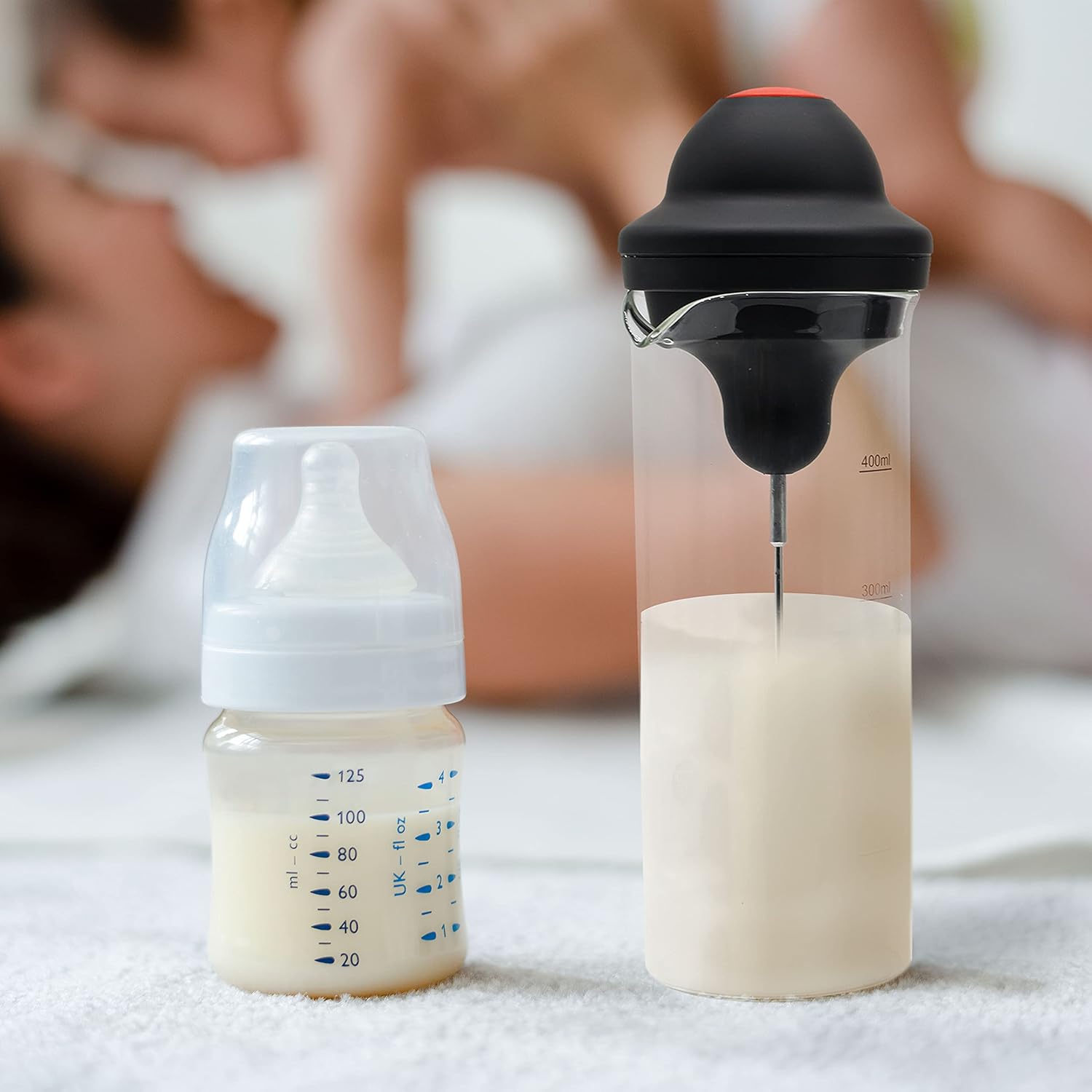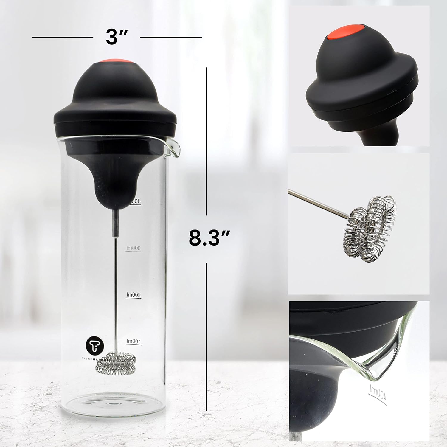 أداة خفق اللبن محمولة باليد تعمل بالبطارية للقهوة واللاتيه والفرابي والماتشا مع مضرب مزدوج من الفولاذ المقاوم للصدأ وكوب رغوة