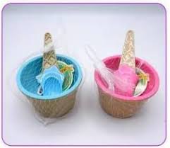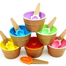 أطقم أطباق وملاعق الآيس كريم الملونة