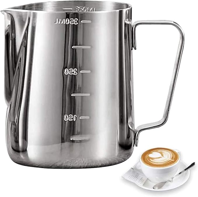 إبريق صنع رغوة الحليب من أر إس – إبريق ستانلس ستيل احترافي بسعة 350 مل لتحضير القهوة، الإسبريسو، اللاتيه، الكابتشينو والكريمة بسهولة
