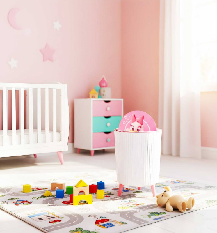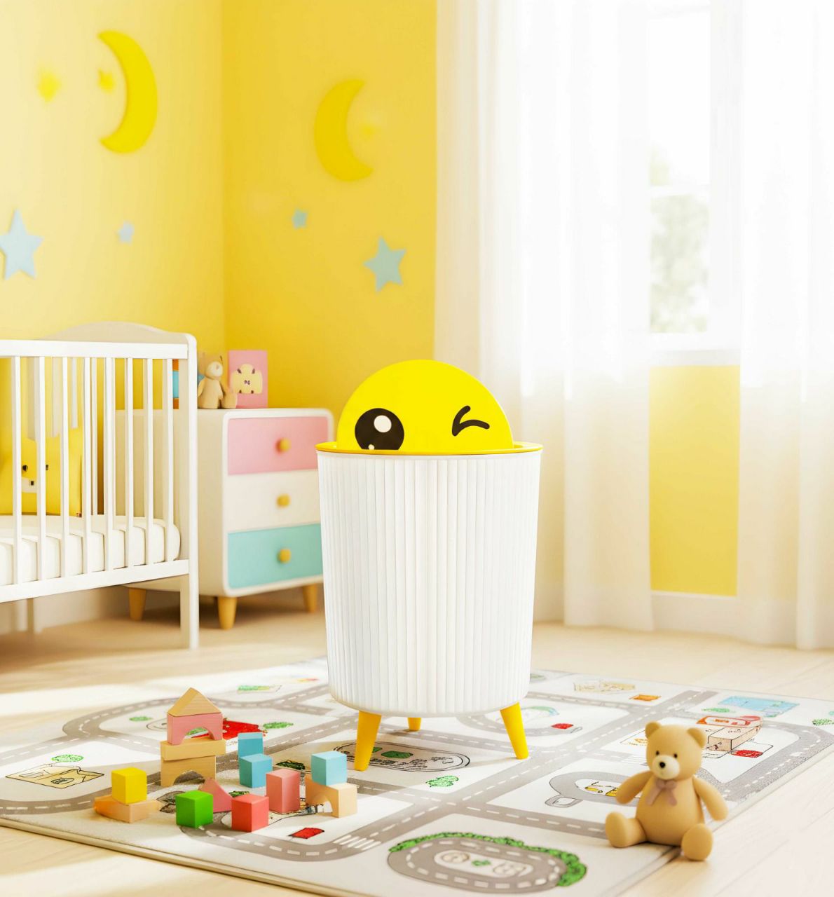 تصميم كرتوني جذاب يشجّع الأطفال على رمي المخلفات بأنفسهم، ويحوّل النظافة إلى عادة يومية سهلة