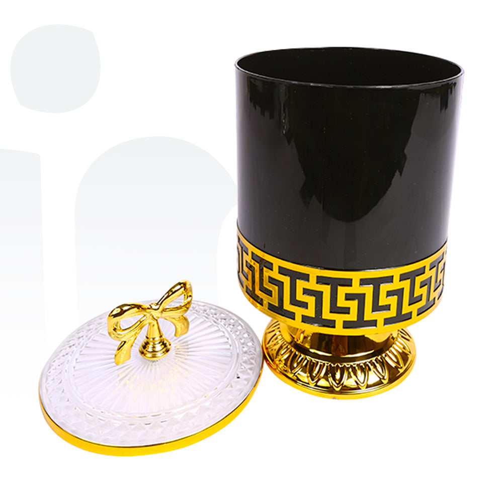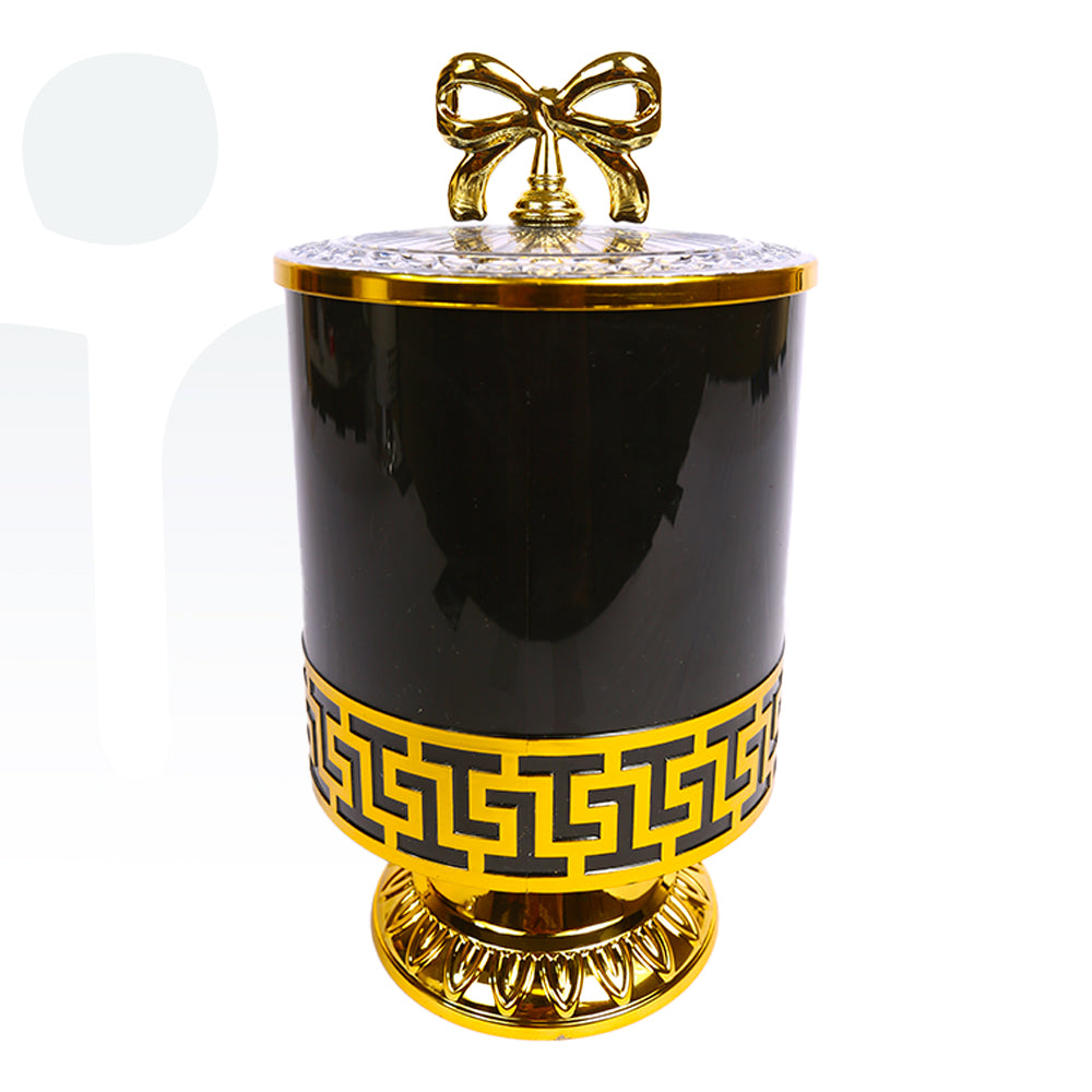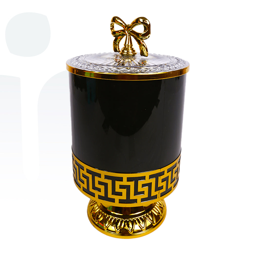برطمان أكريليك مزخرف بغطاء فيونكة للحلويات – أسود وذهبي