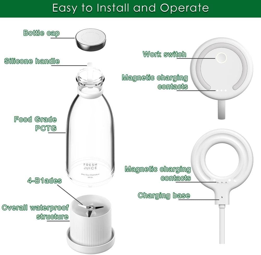 بلندر عصائرصغير محمول سريع كهربائي قابل لإعادة الشحن بمنفذ USB لتحضير العصير والسموذي الطازج – ألوان متعددة، 50 واط