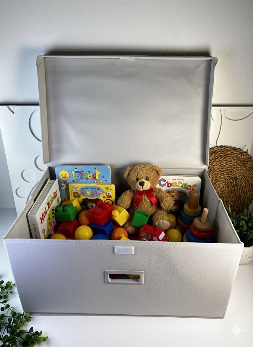 بوكس تخزين بخامة كتان ثقيلة لجميع الاستخدامات حجم كبير يحتوي على غطاء لحفظ الأغراض وحمايتها من الغبار تصميم عملي وأنيق يصلح لتخزين الملابس البطاطين الصغيرة اللحاف الصغيرة الملايات الفوط ألعاب الأطفال الكتب والأدوات الدراسية مناسب للغرف والدريسنج