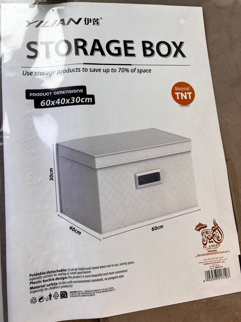 بوكس تخزين كتان بغطاء 30/40/60 سم