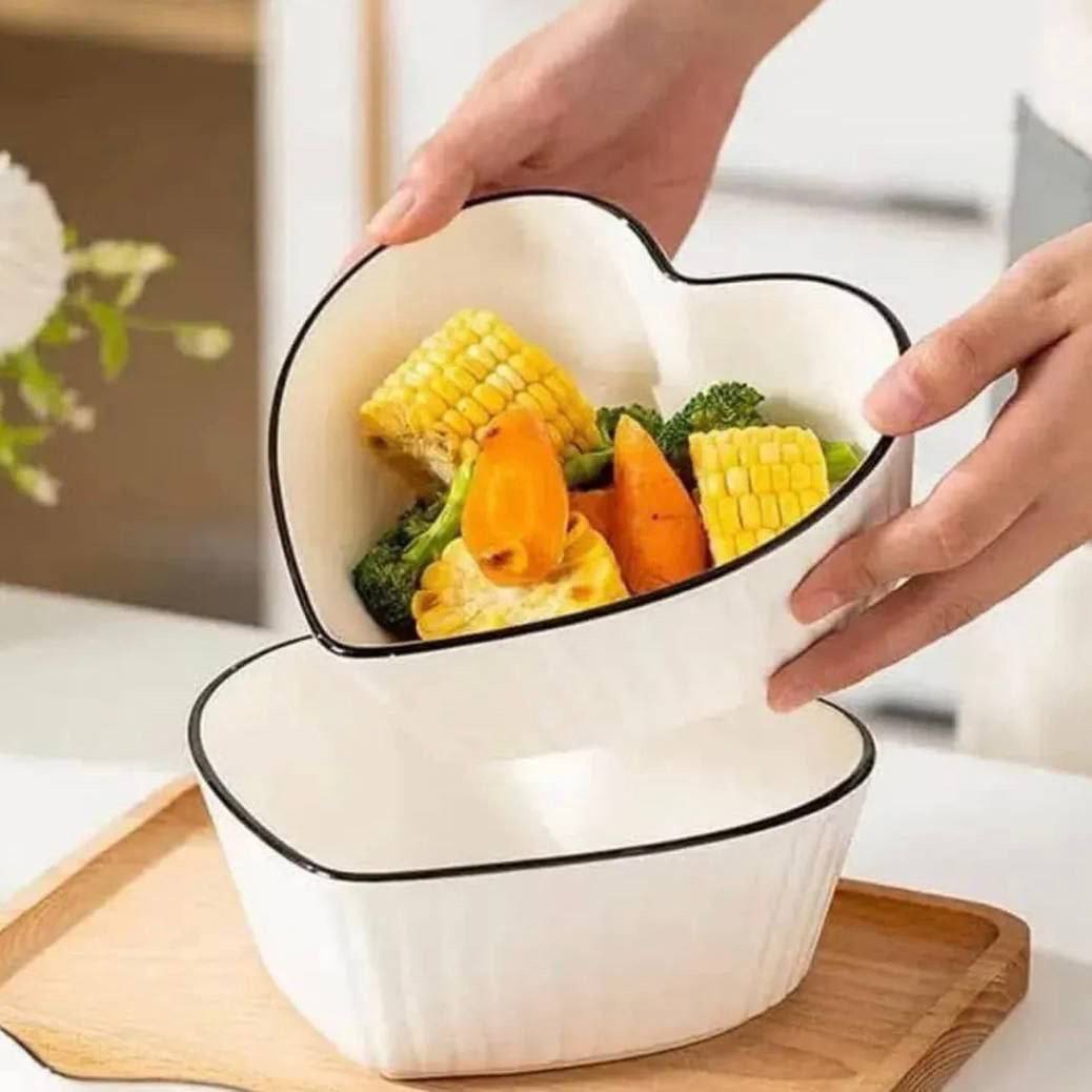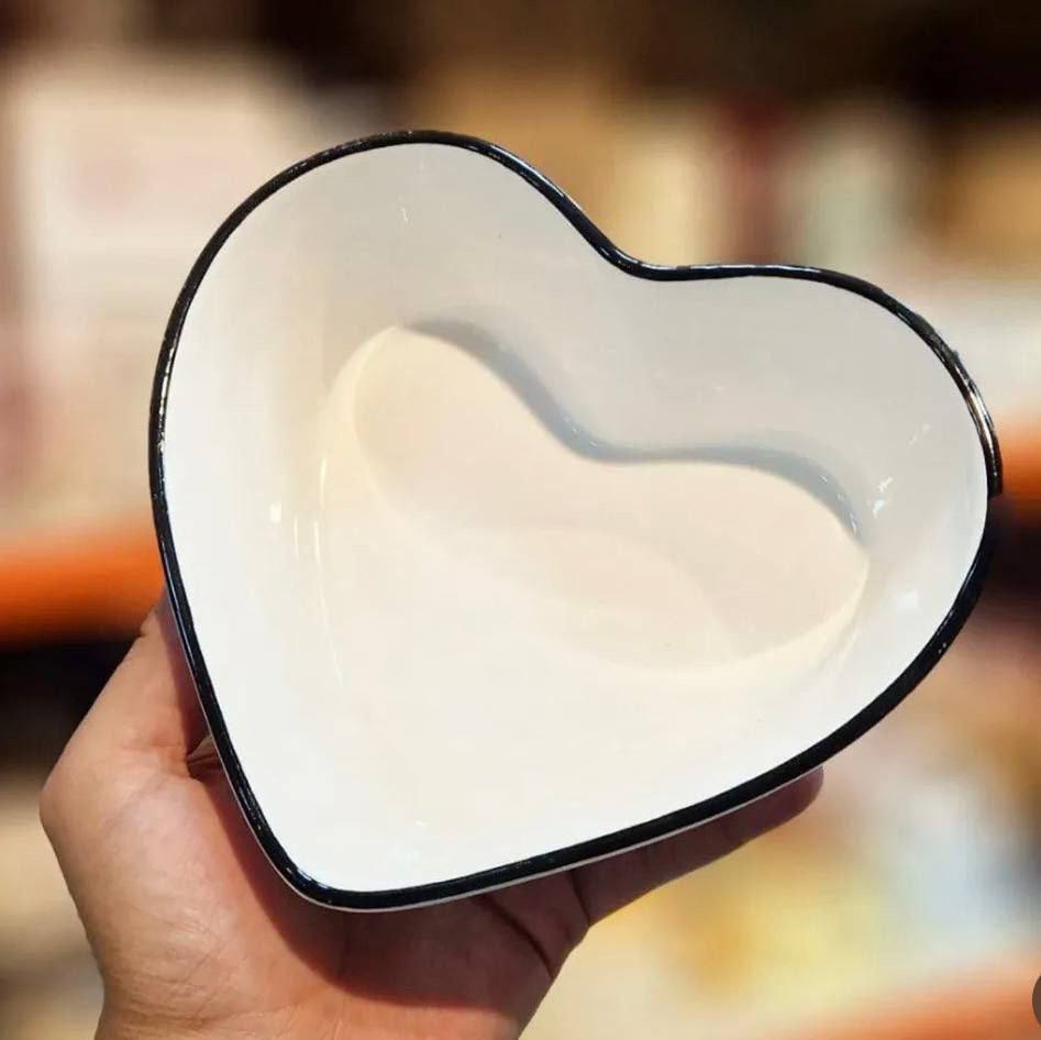 بولة من البورسلين الأبيض مضلعة بحرف أسود بشكل قلب