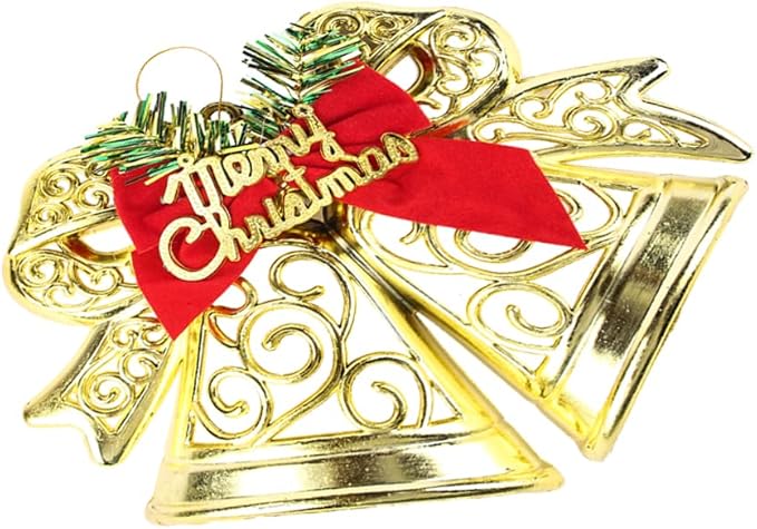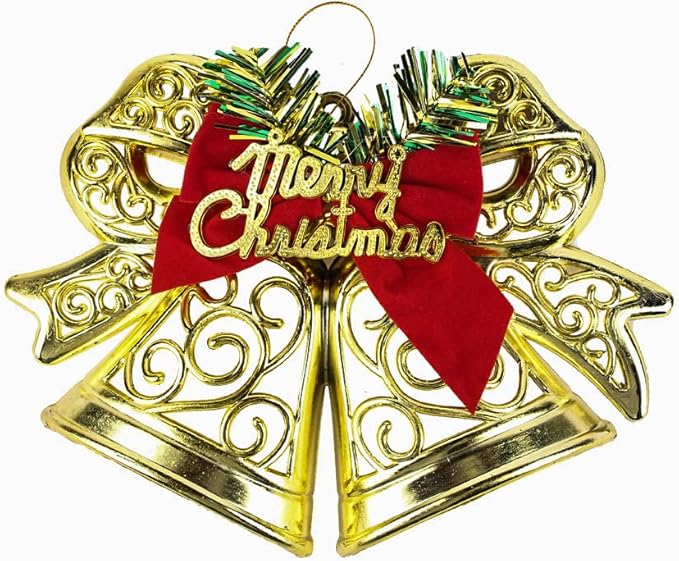 جرس كريسماس مفرّغ مزوّد بفيونكة – ديكور ملون من البلاستيك لتزيين شجرة العيد والمداخل