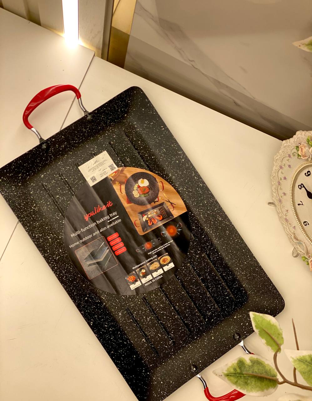 جريل جرانيت عالي الجودة يتميز بحجم كبير مناسب للشوي وتحضير مختلف أنواع اللحوم والدجاج والخضروات يتمتع بطلاء غير لاصق يسهل عملية الطهي والتنظيف كما يحتوي على يد عازلة للحرارة توفر أمانًا وراحة أثناء الاستخدام منتج مستورد بجودة ممتازة ومتانة عالية للاستخدام اليومي
