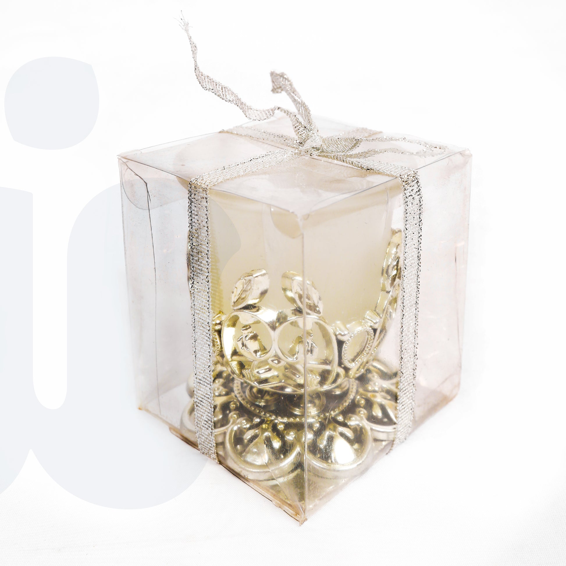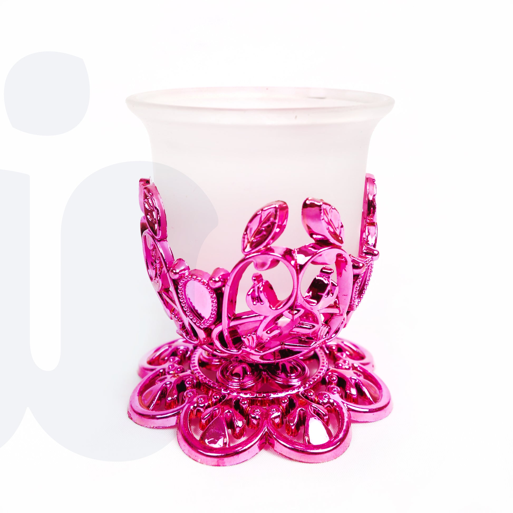 تصميم زجاجي شفاف يعكس ضوء الشموع بشكل جميل