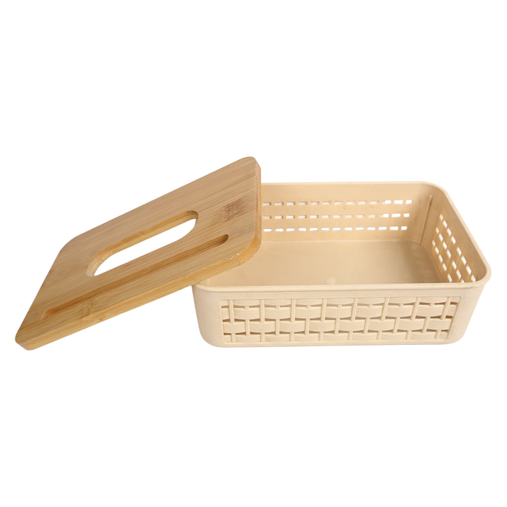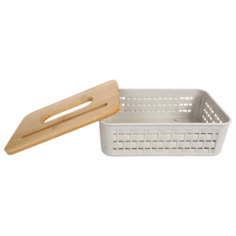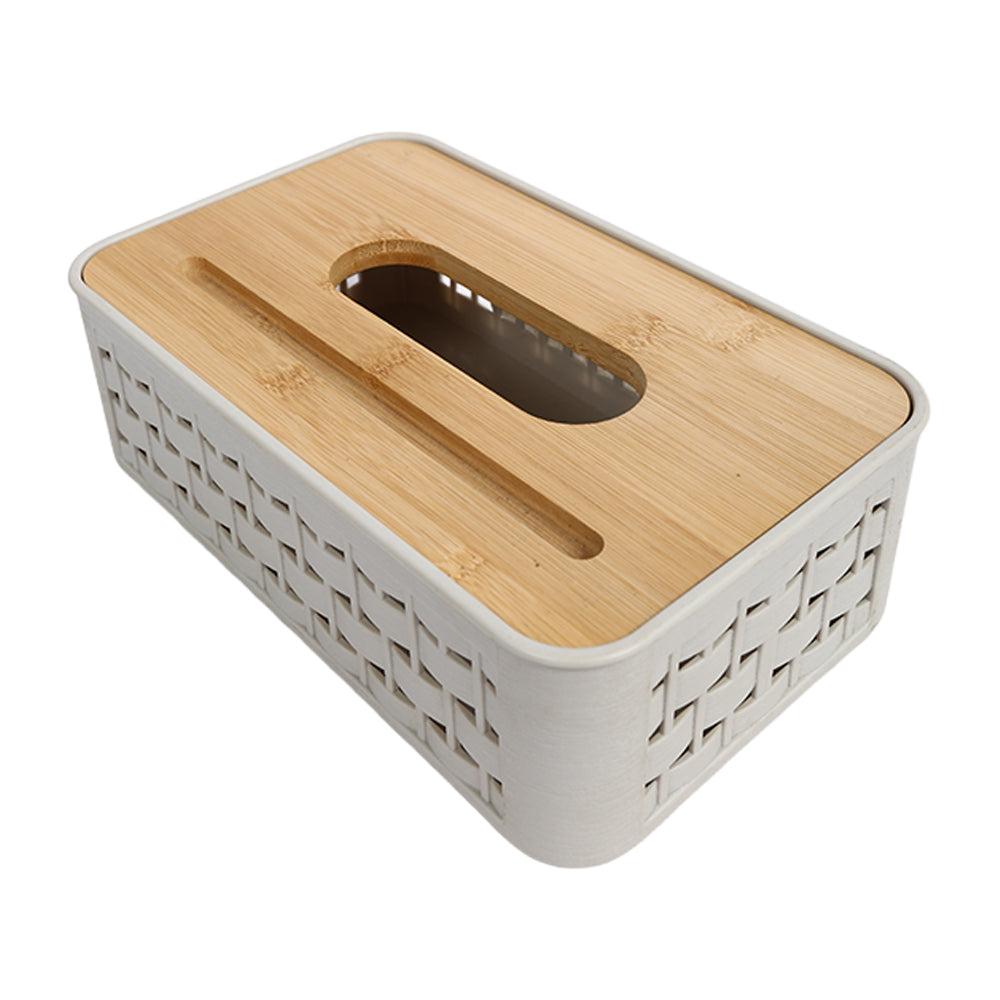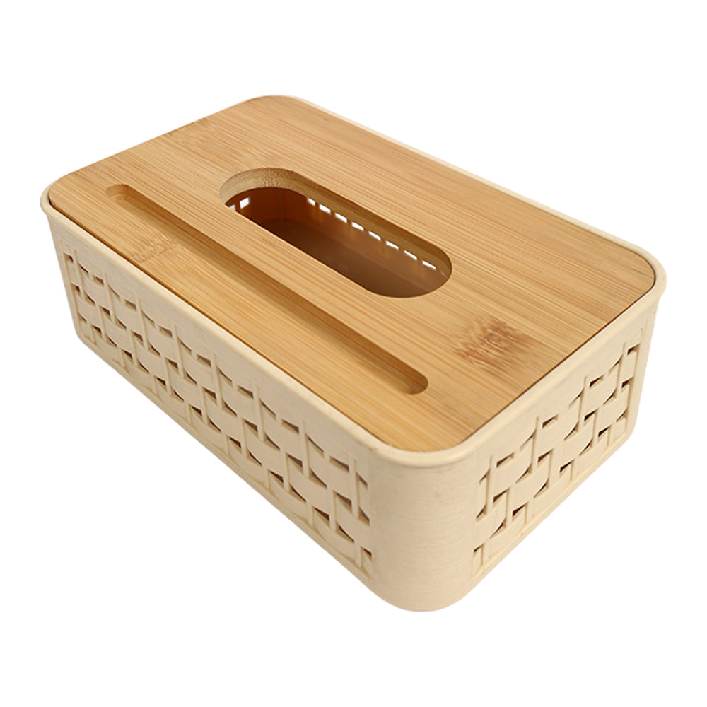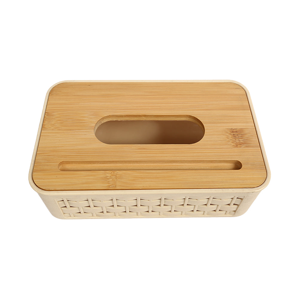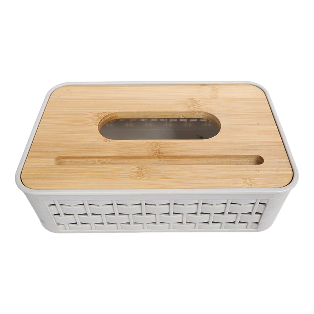 علبة مناديل بغطاء خشبي بامبو – تصميم شفاف أنيق