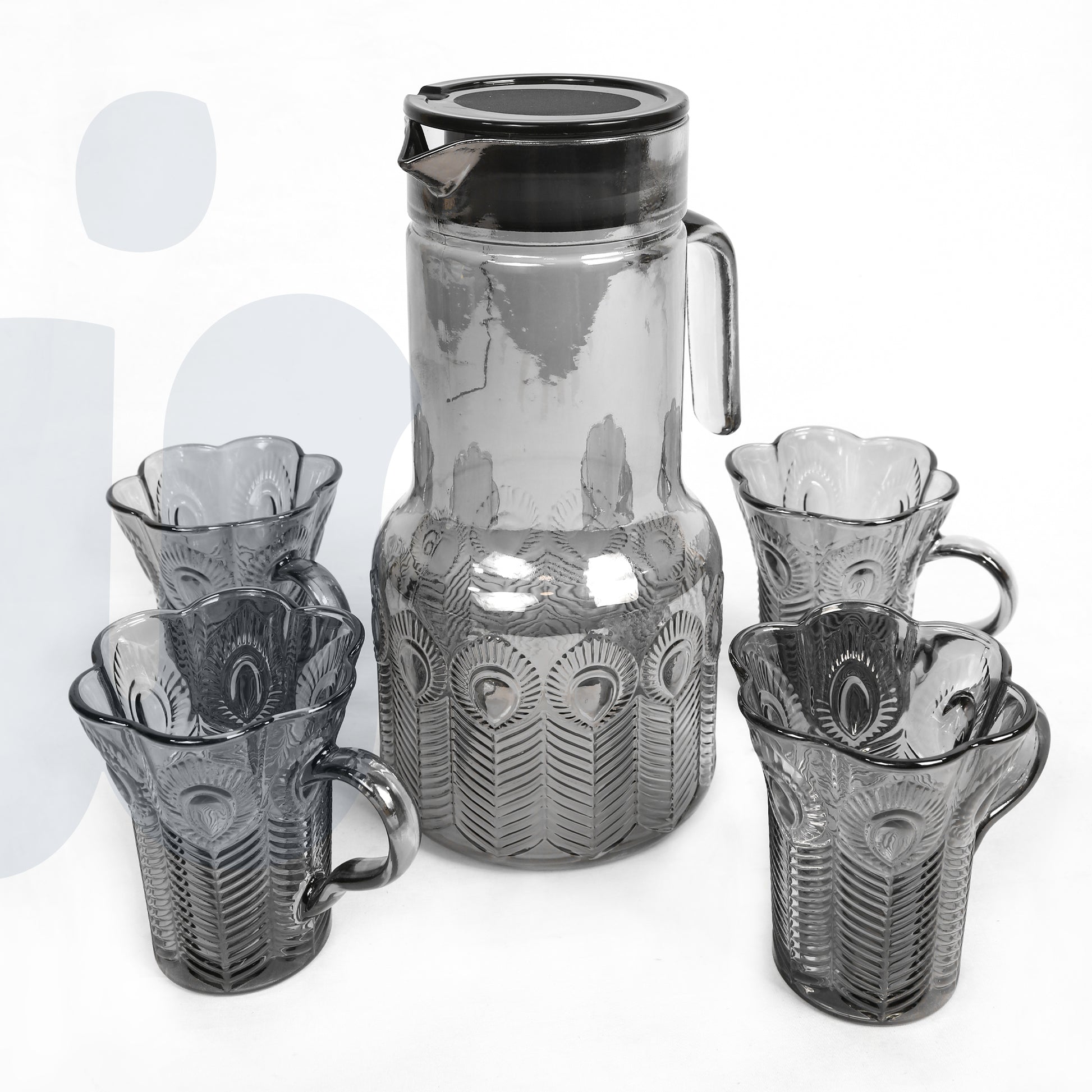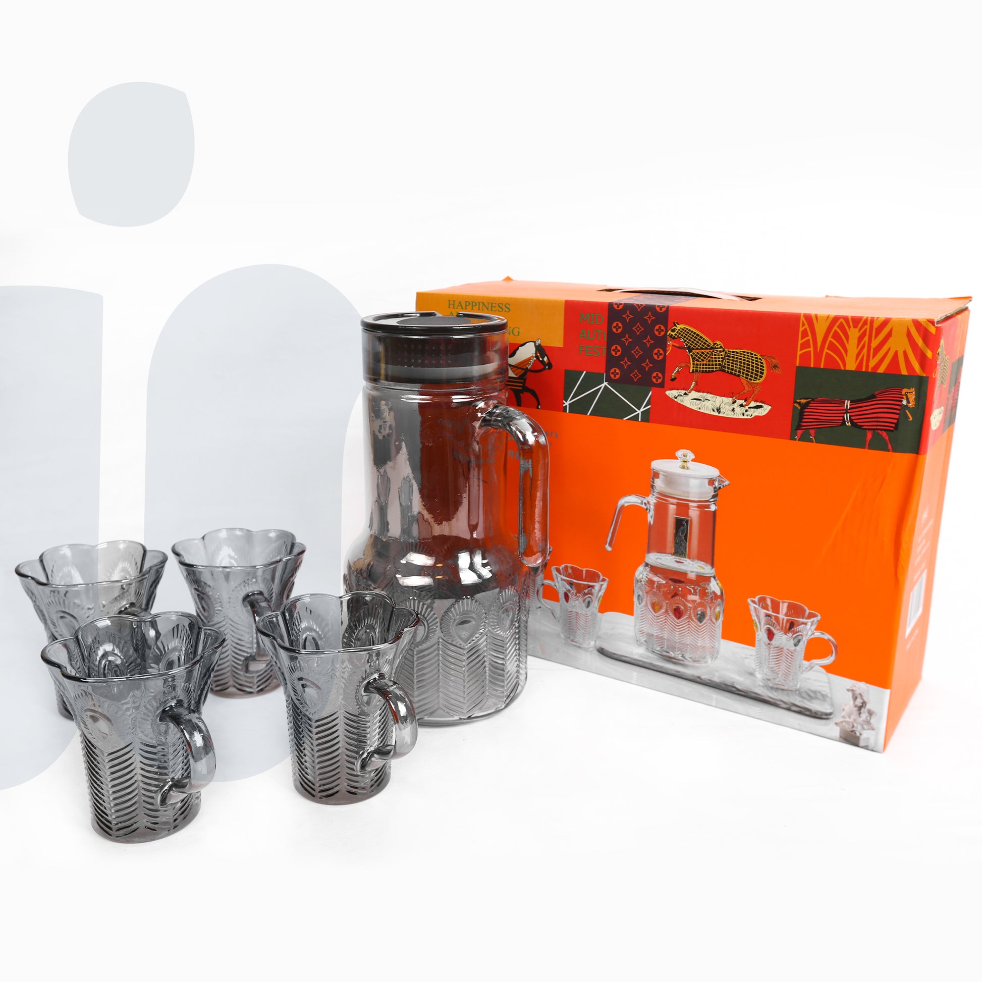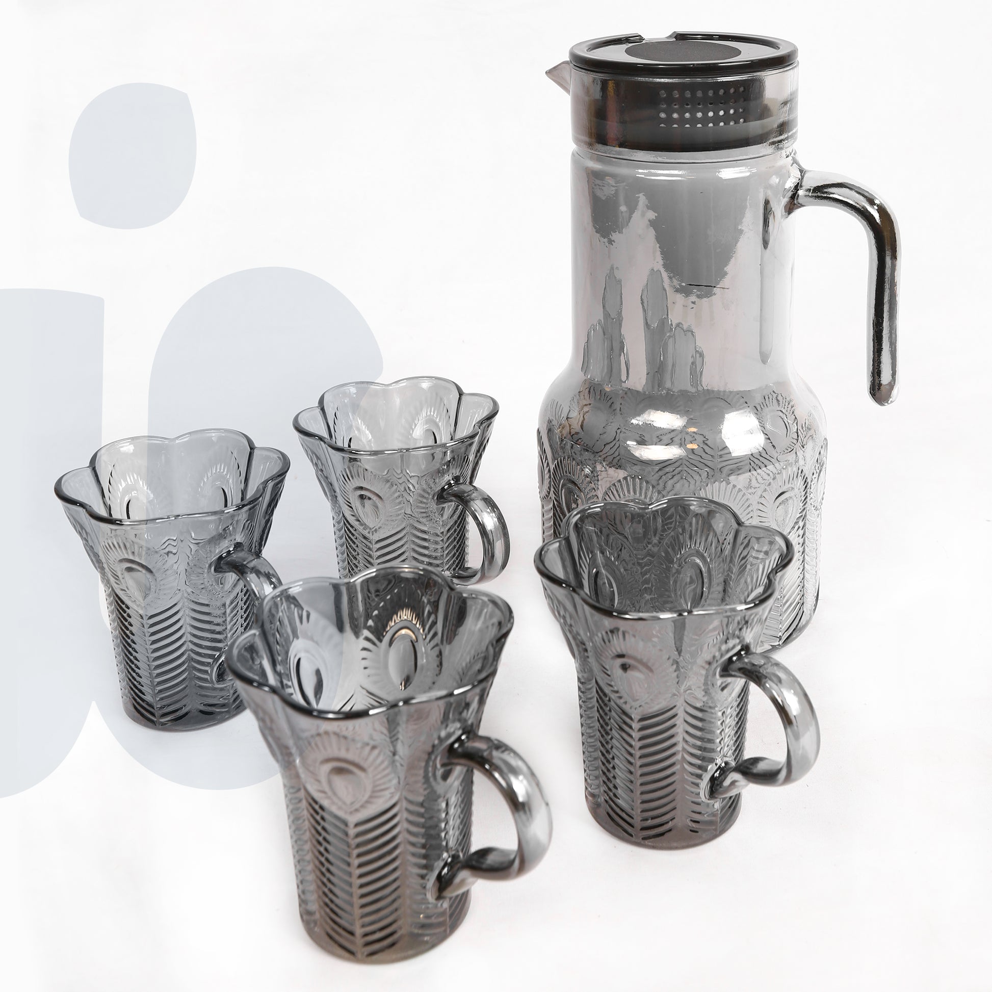 (رمادي)طقم إبريق زجاجي مع 4 أكواب