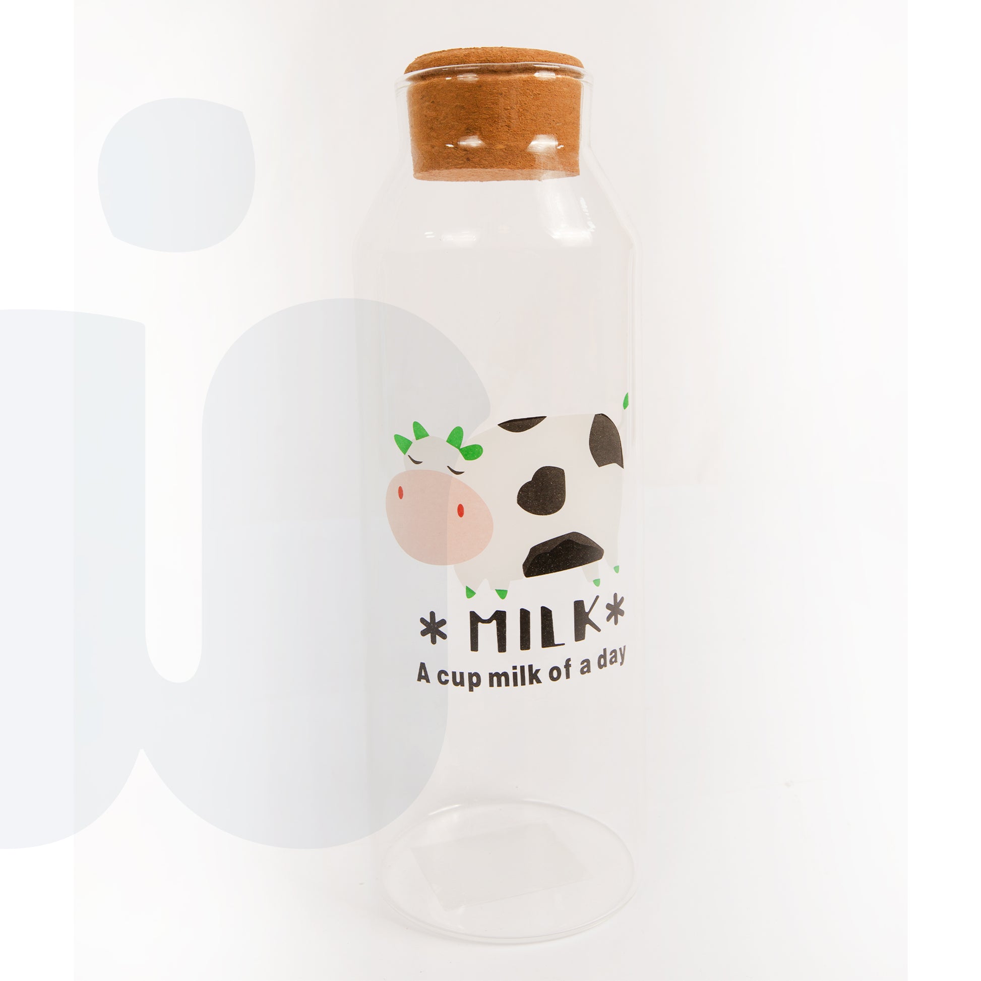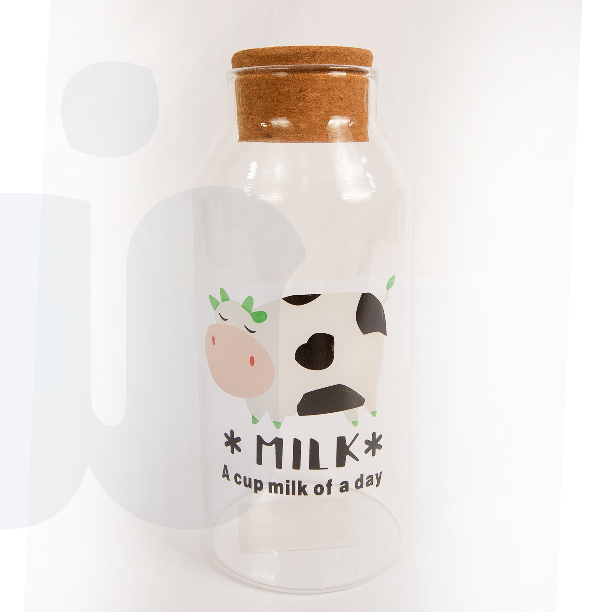 زجاجة حليب دائرية كبيره بتصميم بقرة – غطاء فلين خشبي