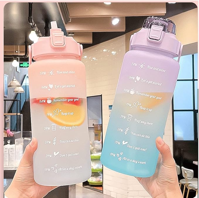 زجاجة ماء رياضية بسعة 1 لتر من ، مزودة بشفاط ومقبض لسهولة الحمل والاستخدام اليومي. تتميز بعلامات توقيت لتذكيرك بشرب الماء على مدار اليوم، مانعة للتسرب، ومناسبة للرياضة، النادي أو السفر.