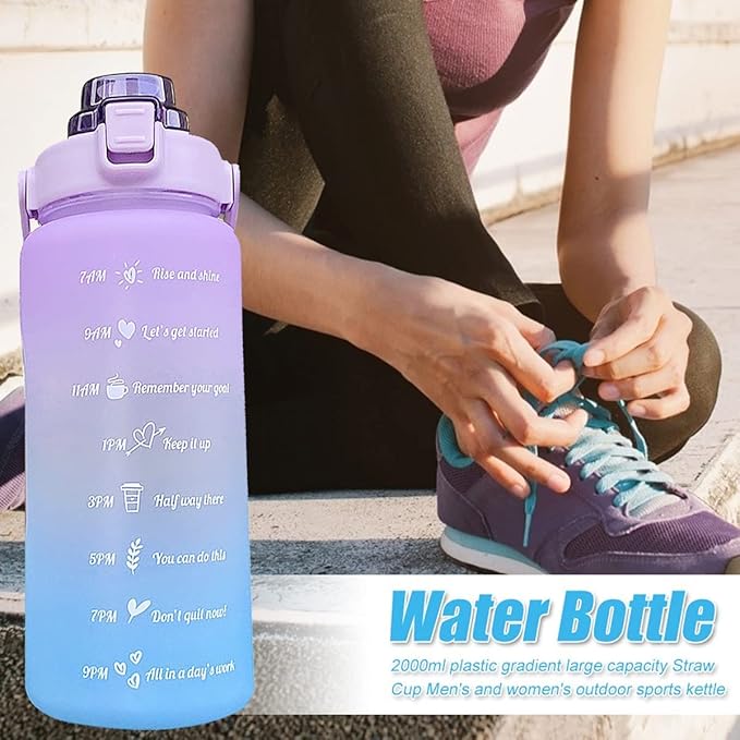 زجاجة ماء رياضية 2 لتر مع شفاط ومقبض – مانعة للتسرب – بنفسجي وأزرق