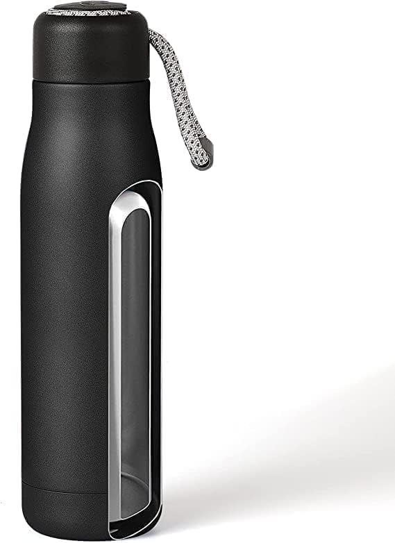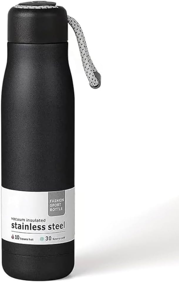 زجاجة مياه معدنية معزولة بتفريغ الهواء، مصنوعة من الستانلس ستيل تحافظ على السخونة لمدة 10 ساعات/البرودة لمدة 30 ساعة (اسود)
