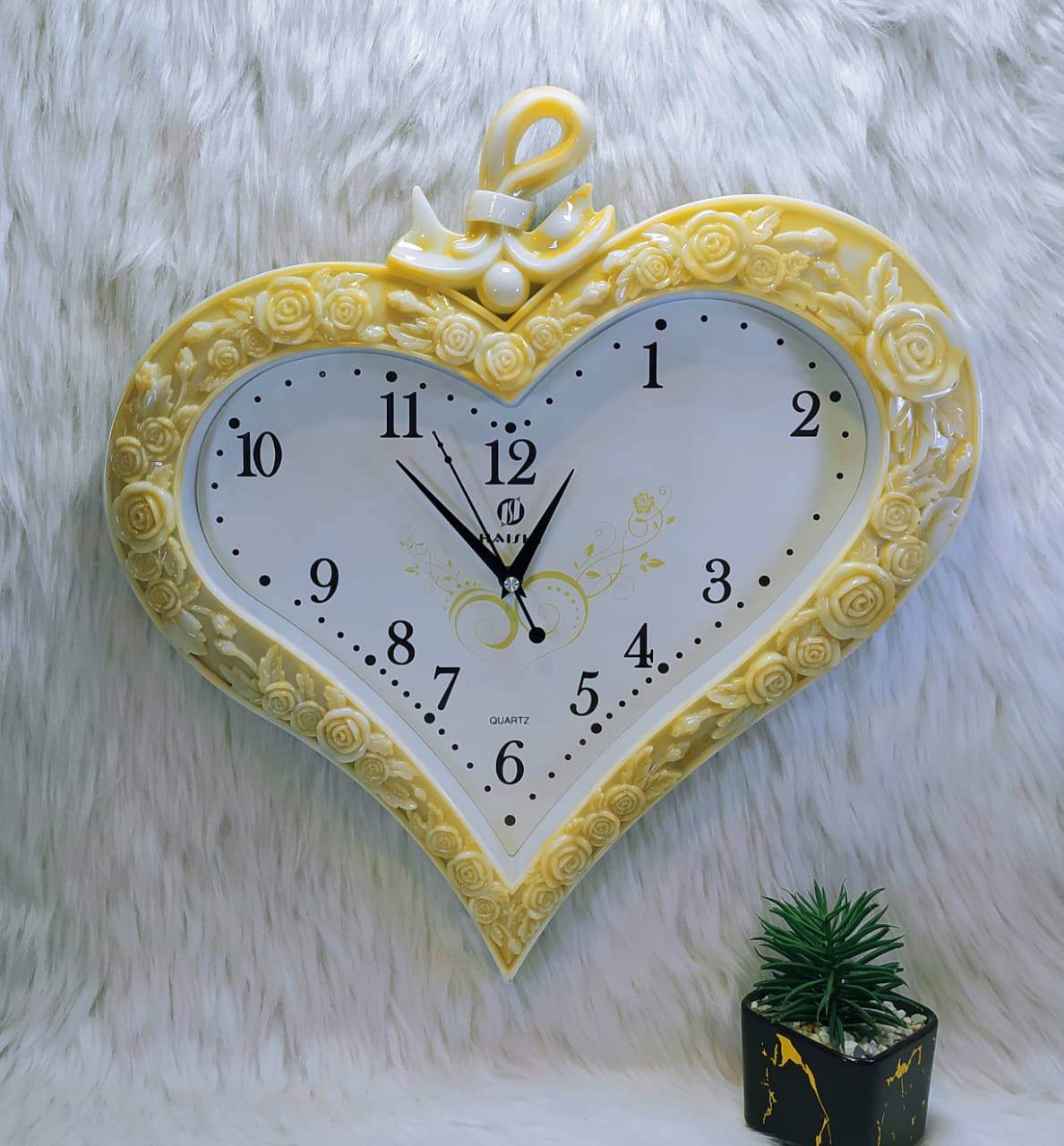 ساعة حائط مودرن بتصميم قلب أنيق مصنوعة من الأكريليك المقوّى بملمس عاجي فاخر، تضيف لمسة رومانسية وعصرية إلى أي مساحة داخلية. تتميز بخامة عالية الجودة وآلية تشغيل لوكس دقيقة وهادئة.