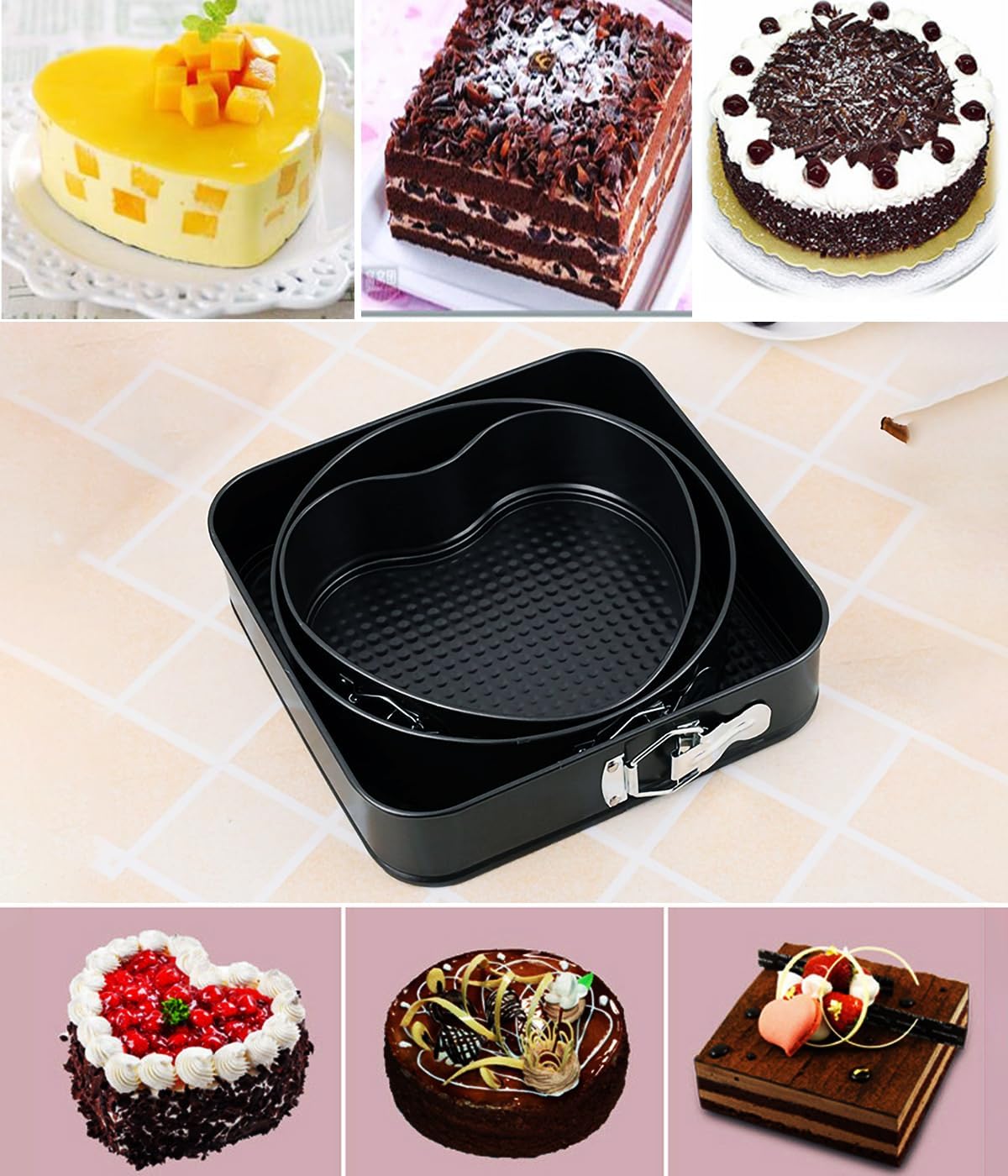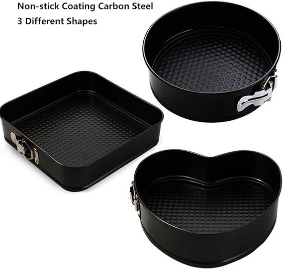 طقم صواني كيك عالية الجودة مكون من 3 قطع مصنوعة من الصلب الكربوني المتين لتوزيع متساوٍ للحرارة أثناء الخبز. تتميز بسطح مقاوم للالتصاق وقاعدة قابلة للفصل لتسهيل إخراج الكيك وكعكة الجبن (تشيز كيك) بدون تلف. تصميم سهل الفك يجعلها مثالية للخبز الاحترافي والمنزلي على حد سواء.