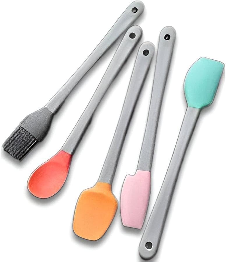 طقم سباتيولا عالي الجودة مصنوعة من السيليكون المقاوم للحرارة وغير اللاصق، مثالي للخبز والطهي اليومي. الطقم يحتوي على 5 قطع متعددة الألوان مع مقابض بلاستيكية عملية، ويتميز بالاستخدام المتعدد لتسهيل عمليات الخفق، الكشط، والتحريك.