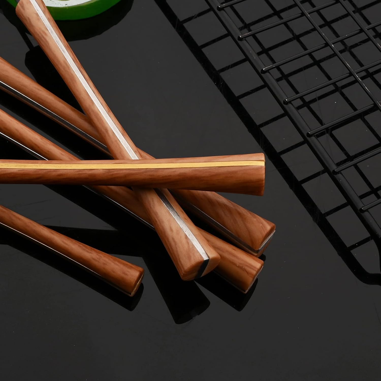 (طقم أدوات مائدة الستانلس ستيل فاخر 24 قطعة بمقابض خشبية (بحواف مربعه