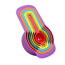 : يحتوي الطقم على مجموعة متدرجة تبدأ من الملعقة الصغيرة وصولاً إلى الكوب الكبير لتغطية كافة احتياجات الطبخ.
