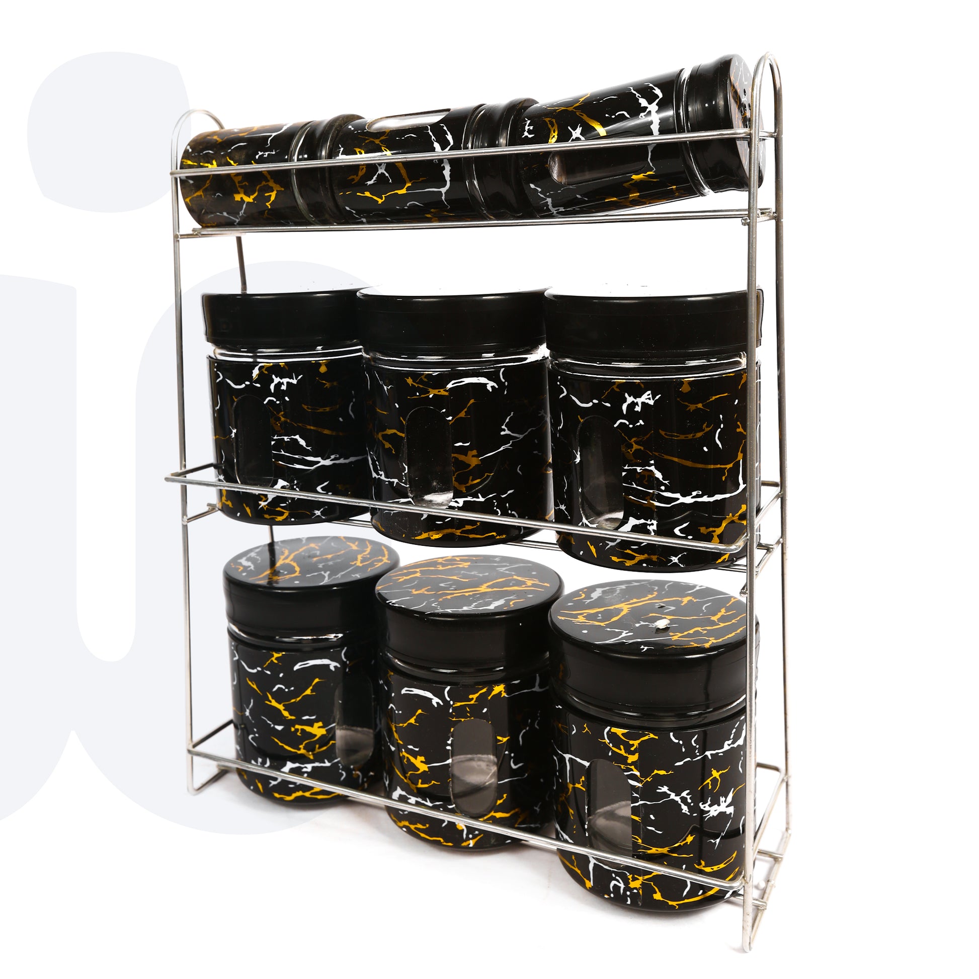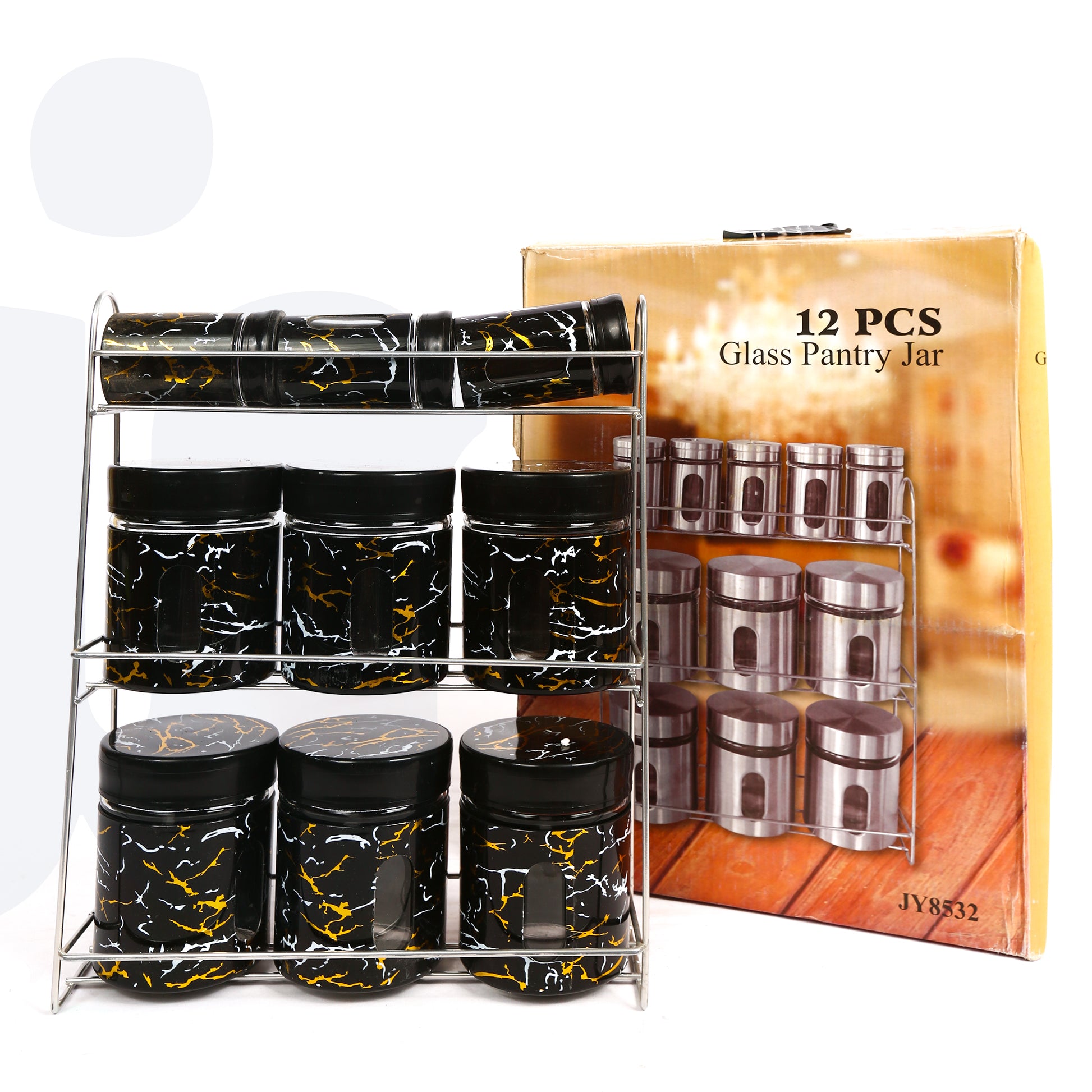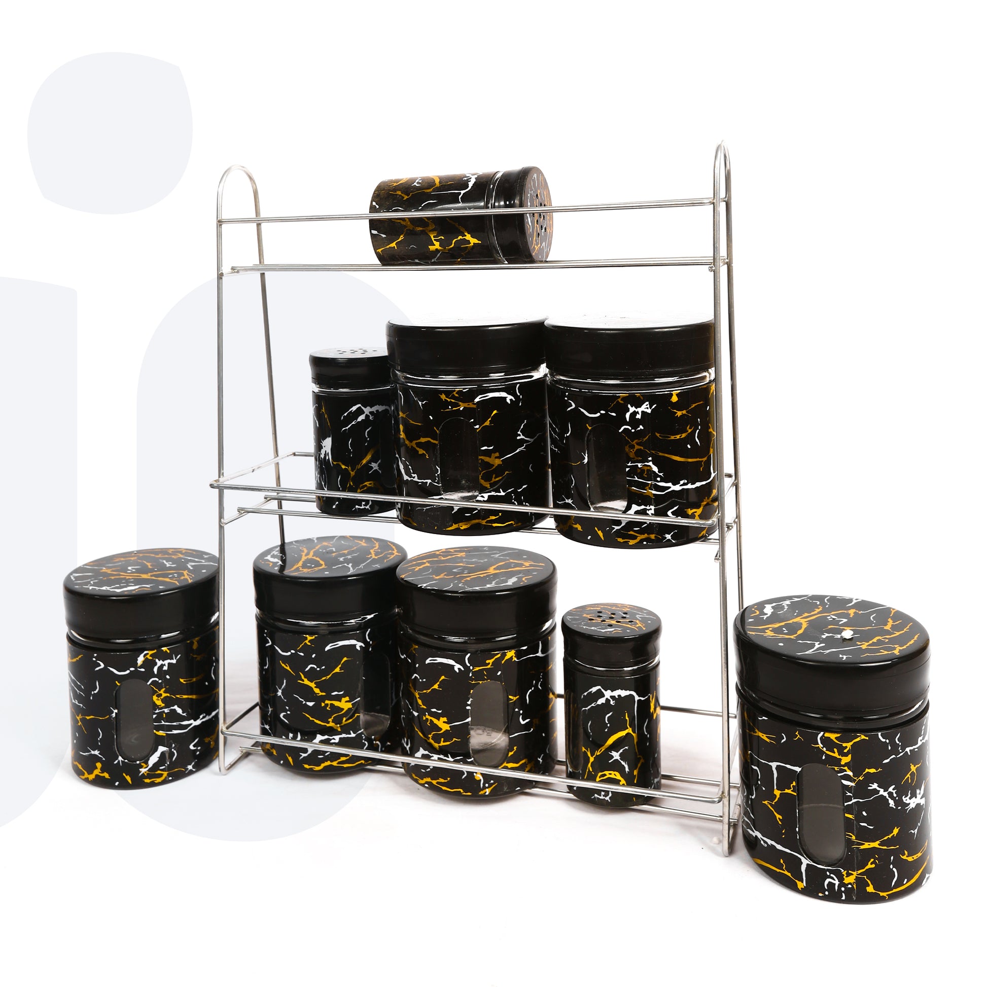 -يتضمن 11 علبة توابل زجاج مع استانلس ستيل مع غطاء محكم.