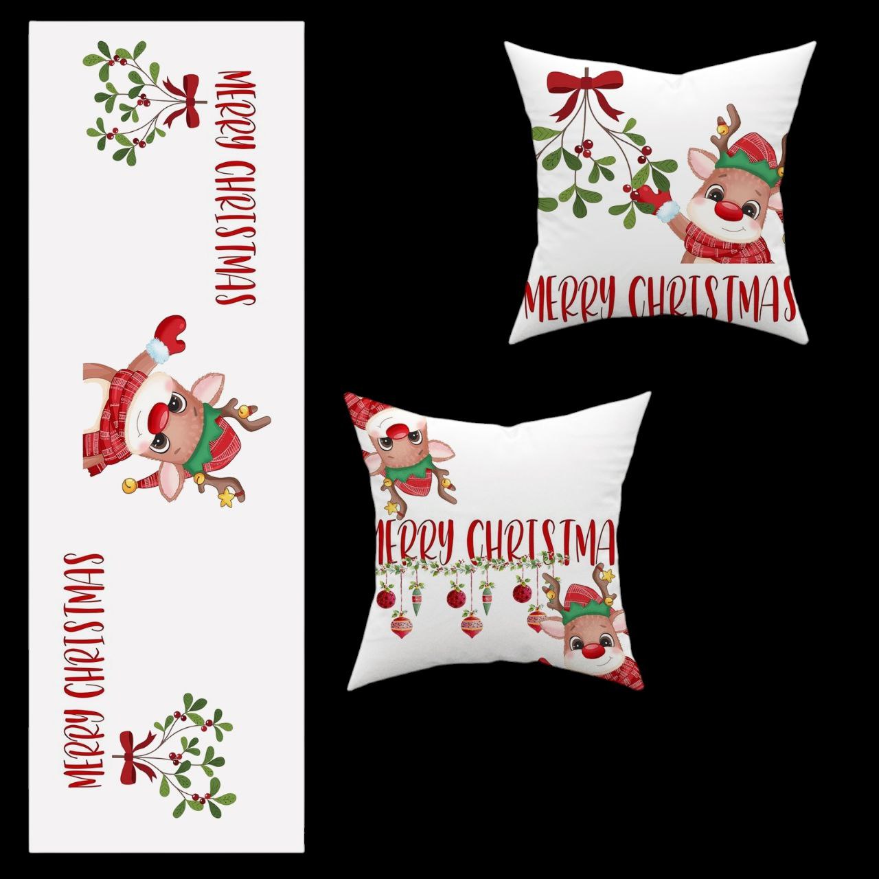 طقم رانر قطيفة مع كوشن 2 قطعة – 45×45 سم