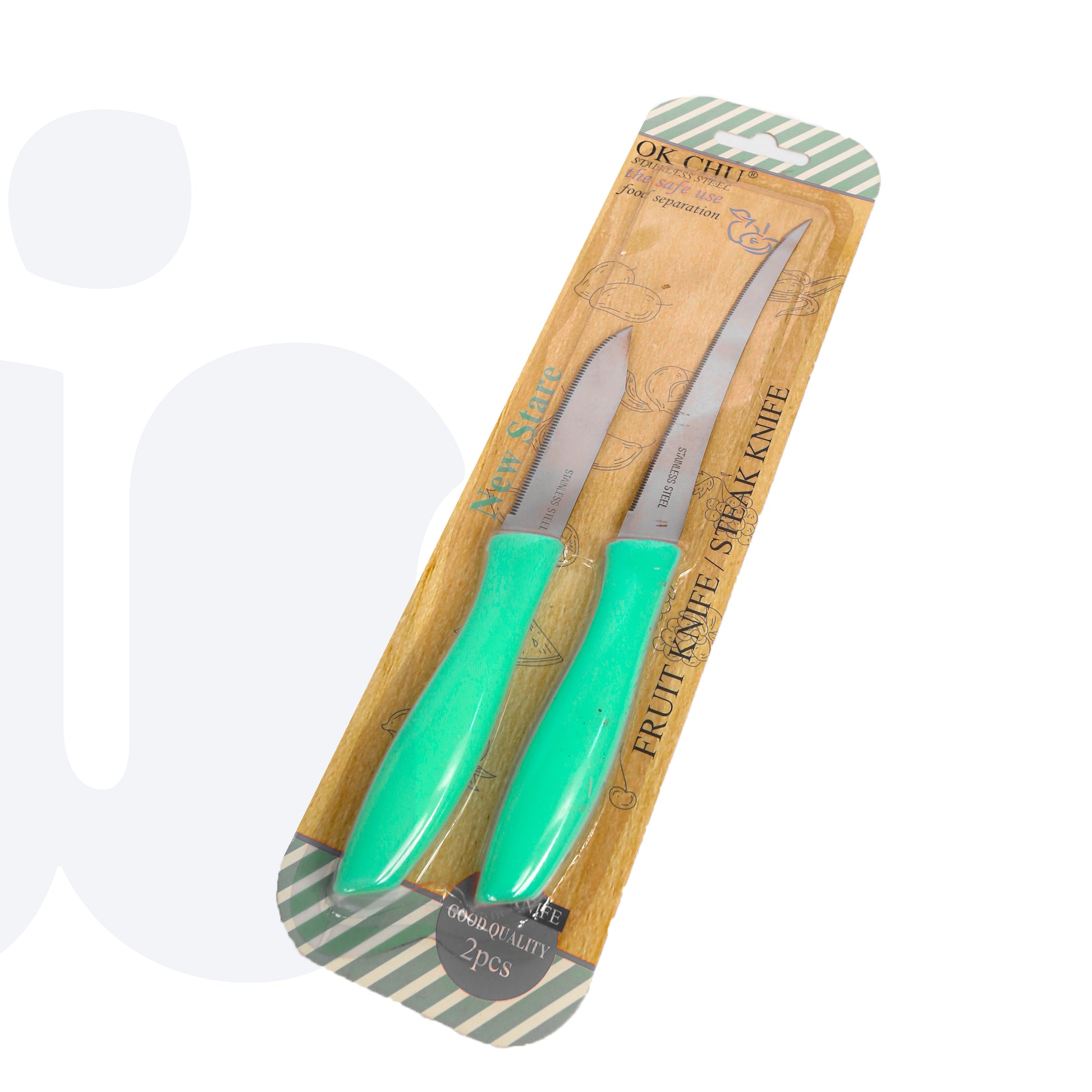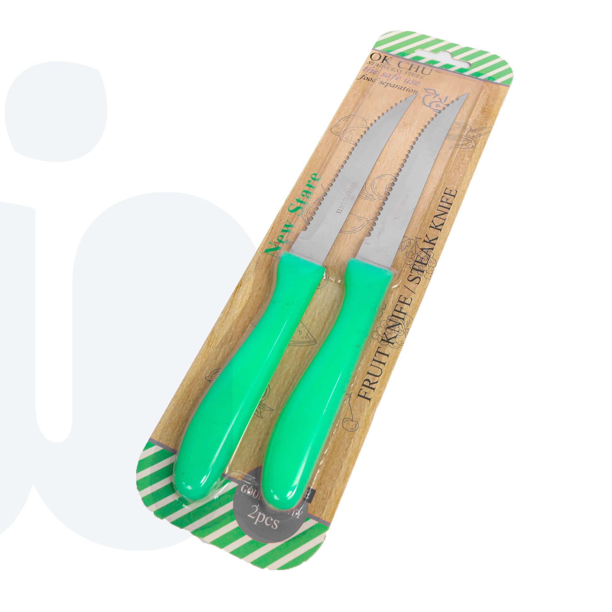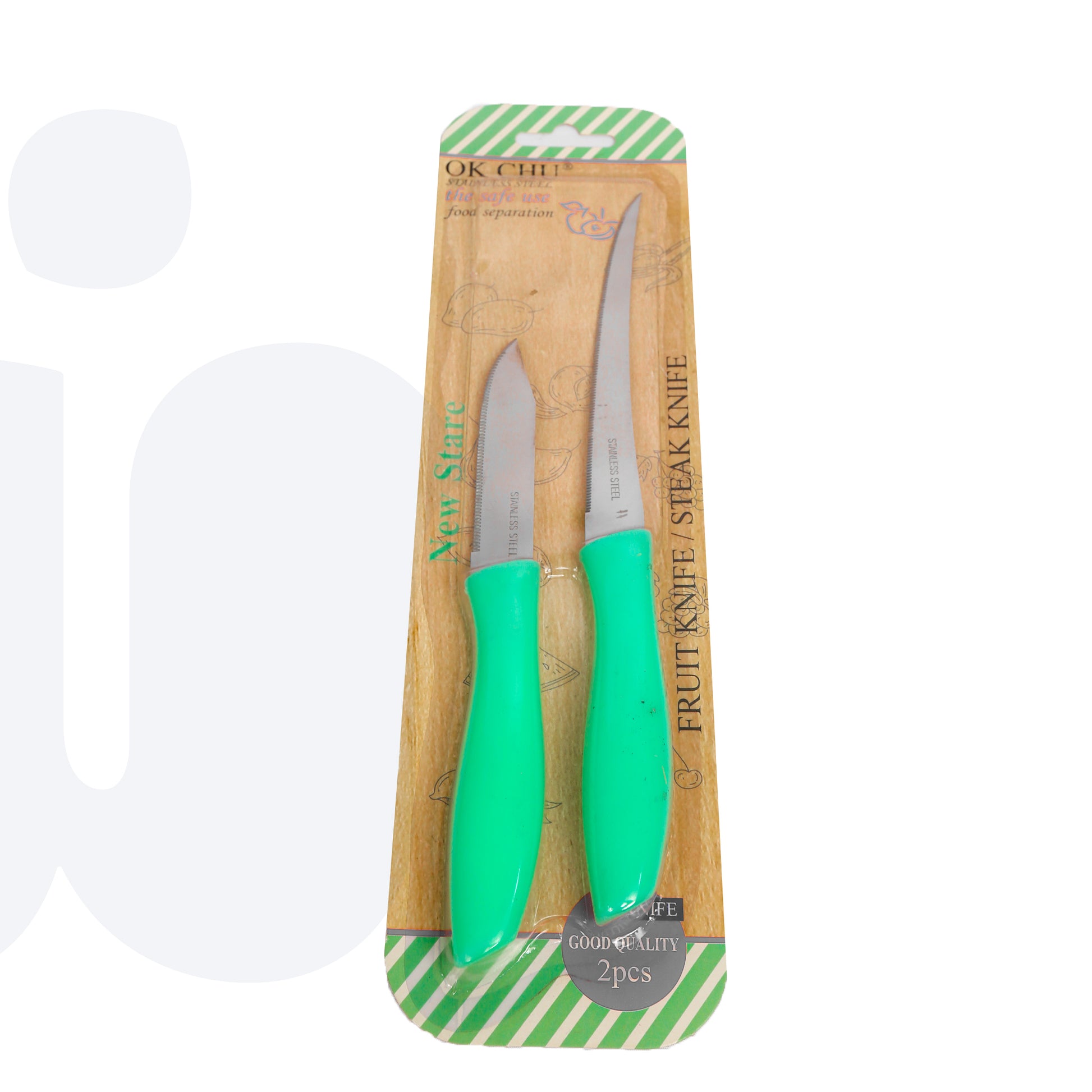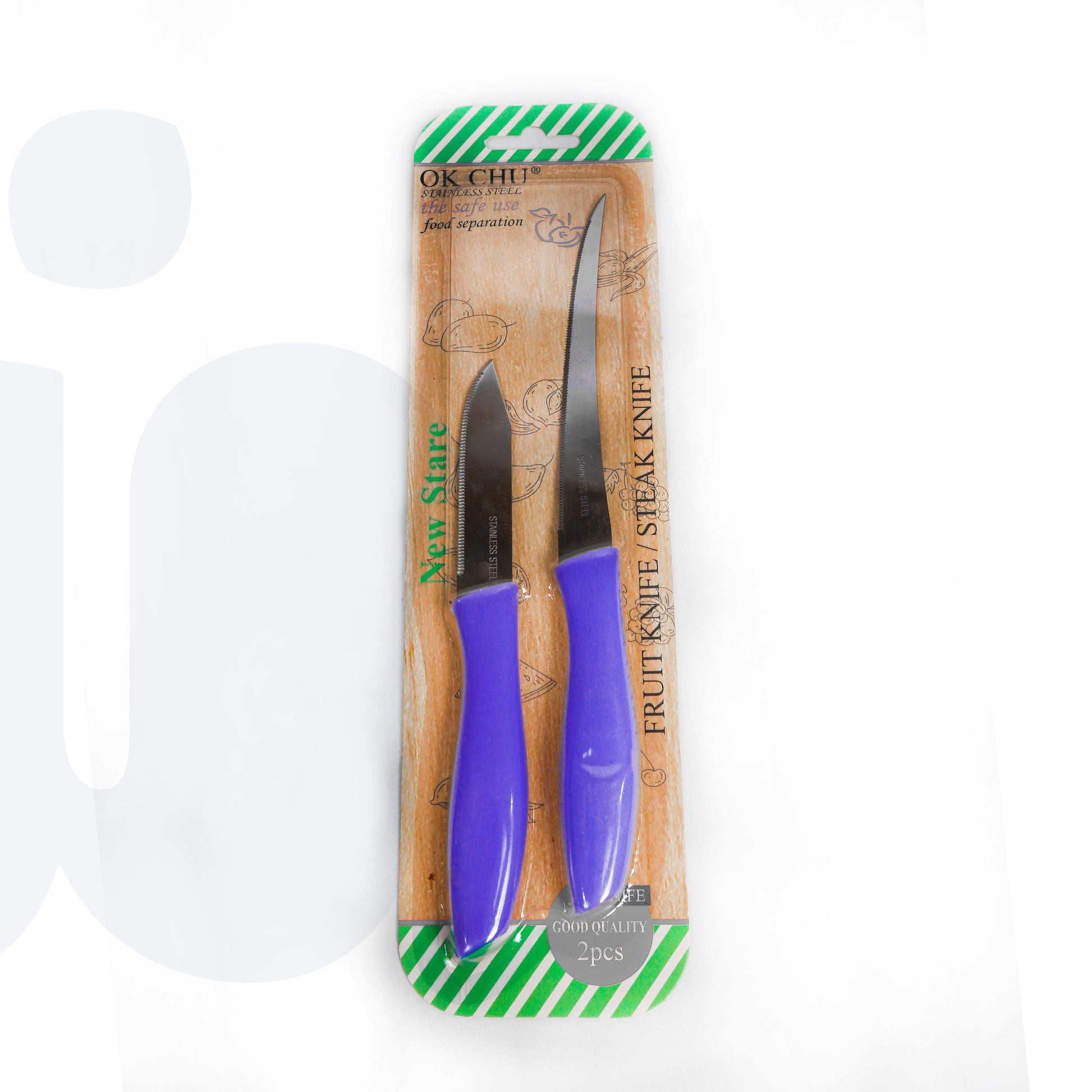 طقم أنيق مكون من سكينتين حادتين مصممتين لتقطيع وتقطير مختلف أنواع الأطعمة بسهولة ودقة. مصنوعتان من الفولاذ المقاوم للصدأ لضمان المتانة وطول العمر، مع مقابض مريحة توفر قبضة ثابتة وآمنة أثناء الاستخدام اليومي في المطبخ.