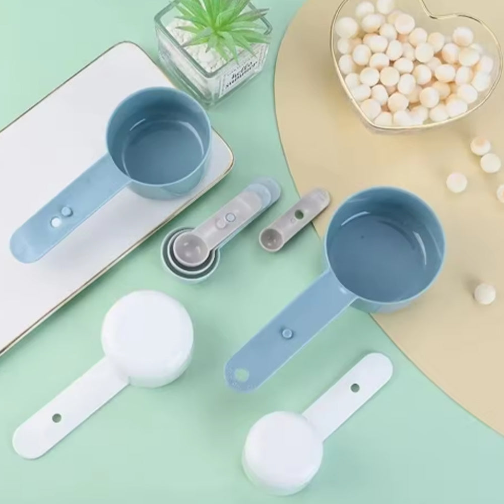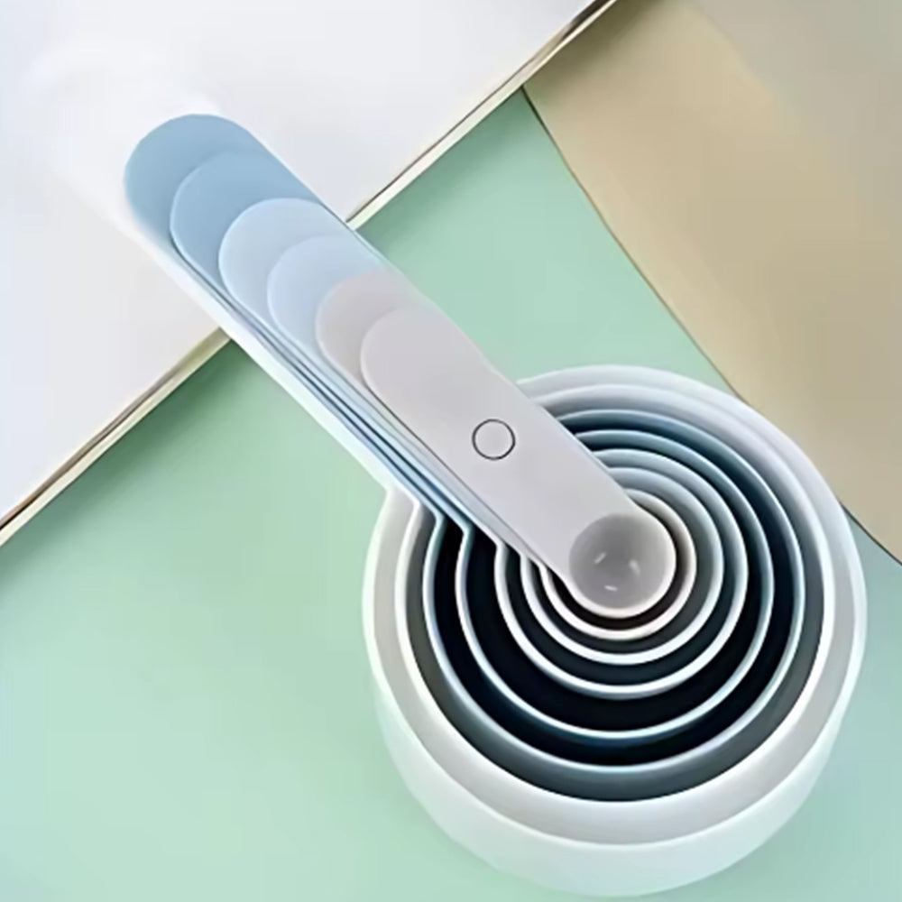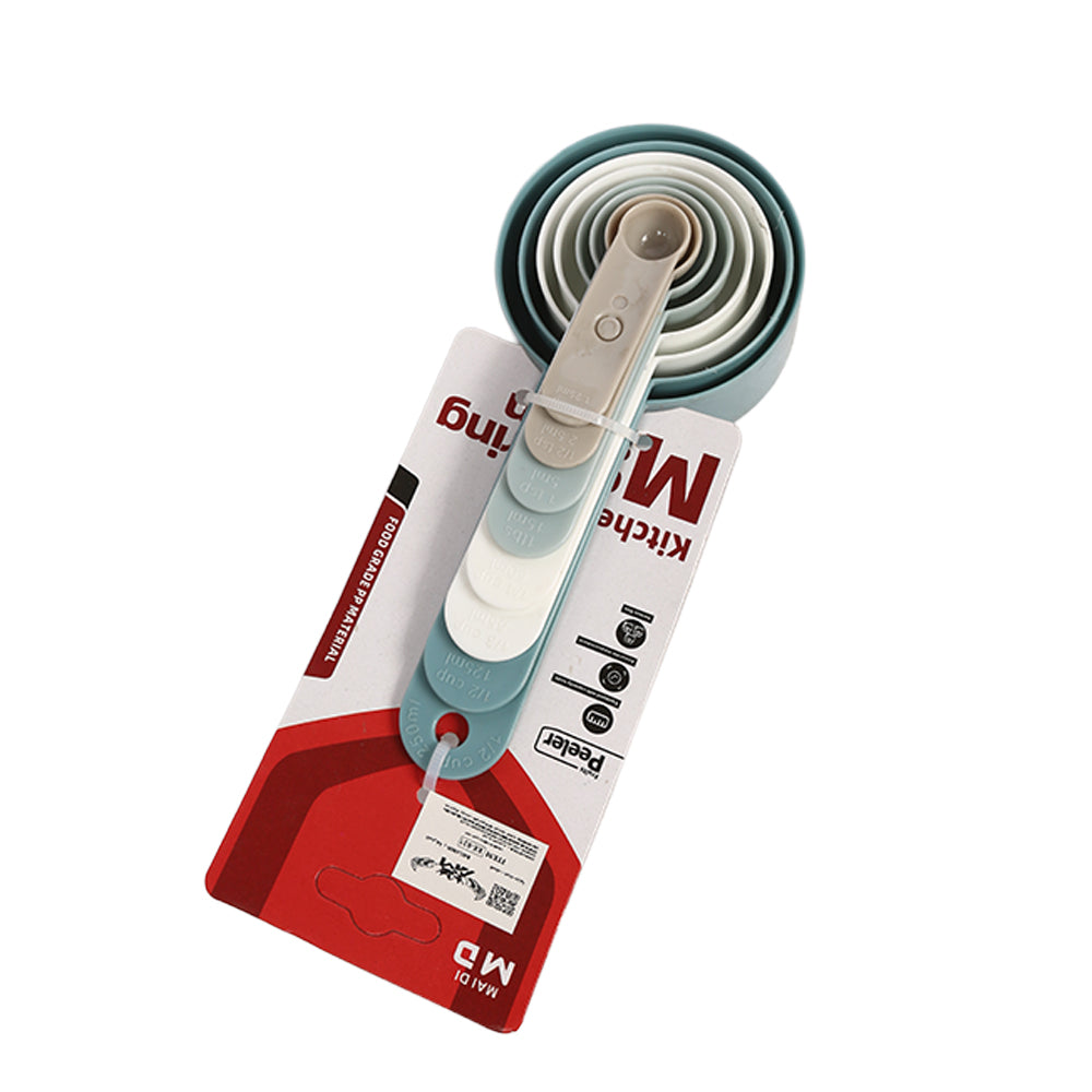 طقم عملي مكون من 8 ملاعق ومعايير قياس بأحجام مختلفة لتسهيل تحضير وصفات الطعام والمخبوزات بدقة. مصنوع من مواد عالية الجودة وآمنة للطعام، بتصميم مدمج يمكن تكديسه لتوفير المساحة في المطبخ. مثالي لقياس المكونات الجافة والسائلة بسهولة وبدون فوضى.