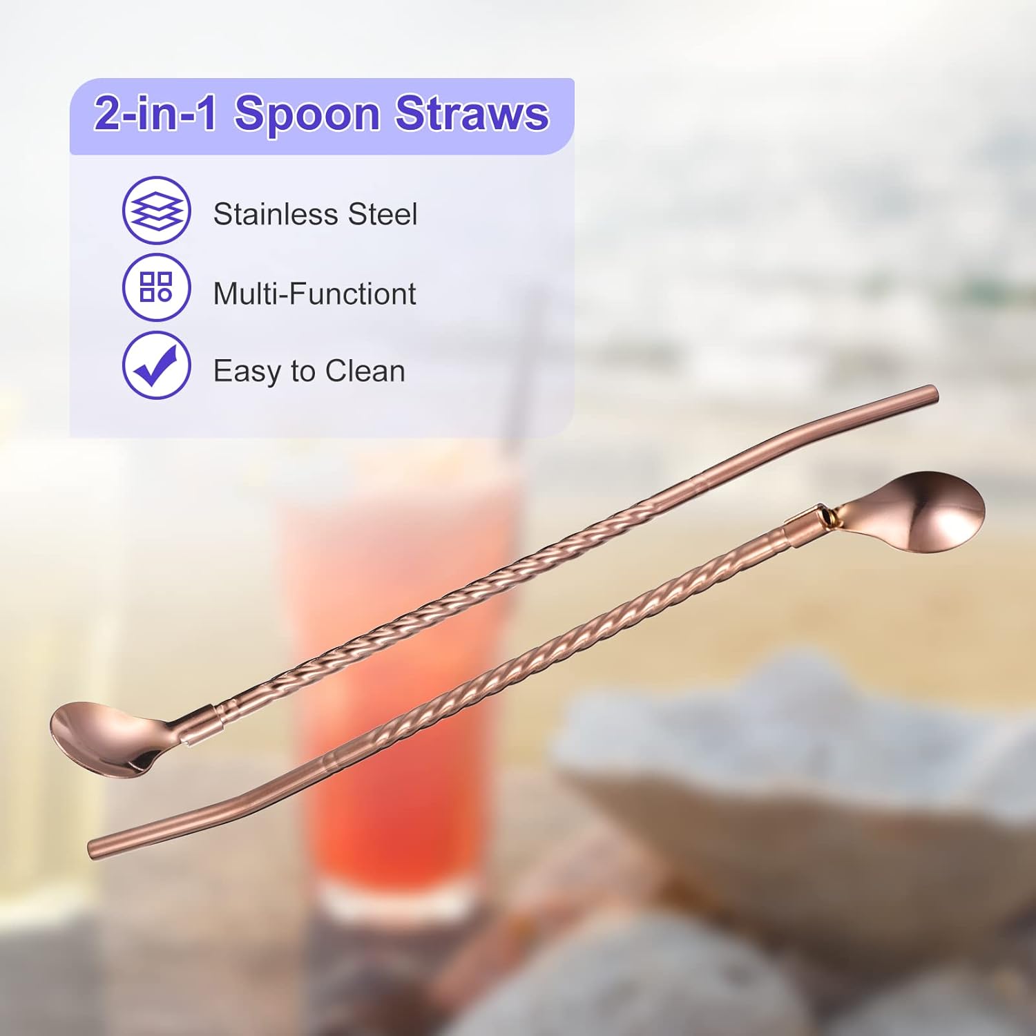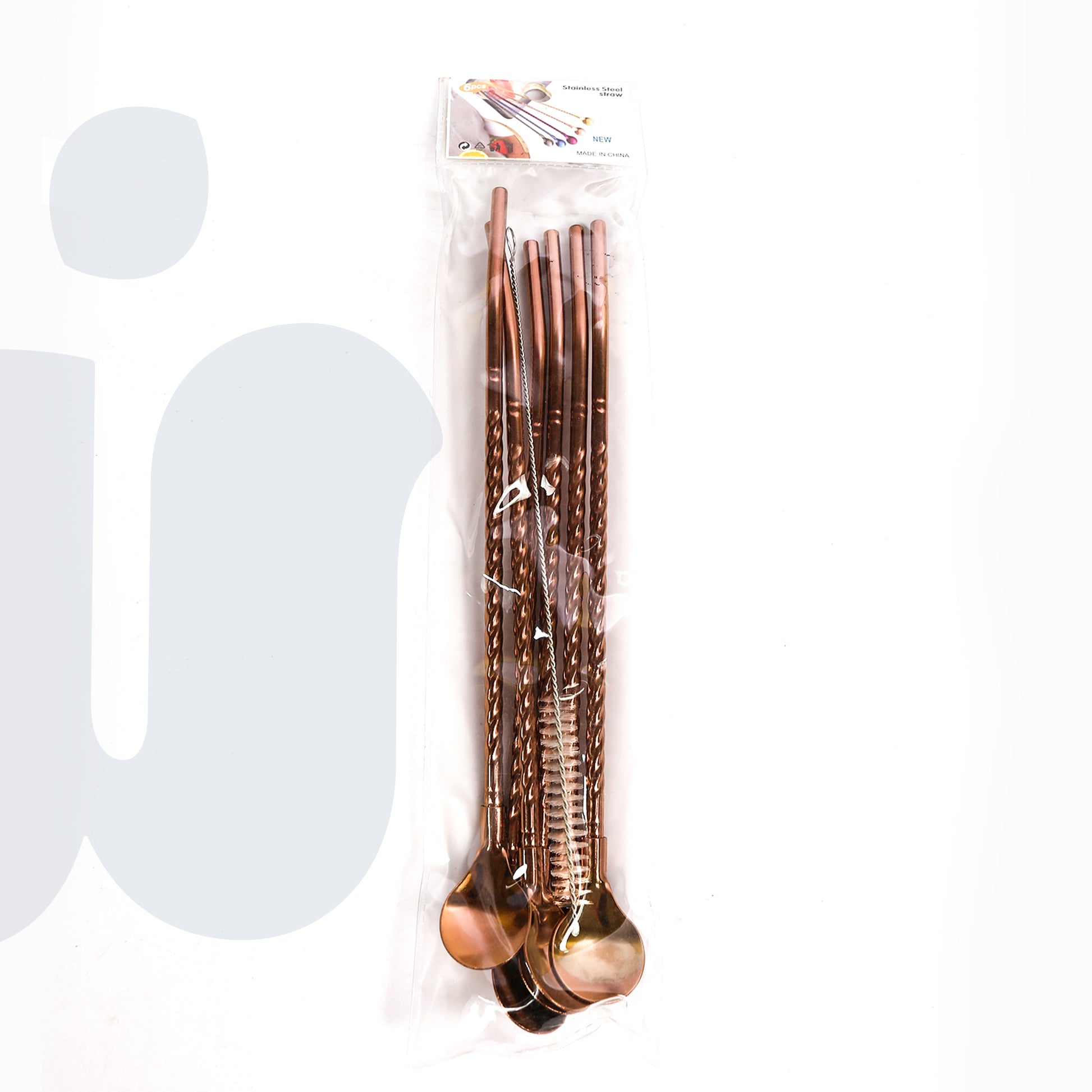 طقم فاخر مكون من 6 ملاعق شرب بتصميم يجمع بين الملعقة والمصاصة في قطعة واحدة أنيقة بلون نحاسي جذاب. مصنوع من الفولاذ المقاوم للصدأ عالي الجودة ليمنحك متانة ولمعانًا يدومان طويلًا، مثالي للمشروبات الباردة والعصائر والميلك شيك. يأتي مع فرشاة تنظيف مخصصة لتسهيل التنظيف بعد الاستخدام.