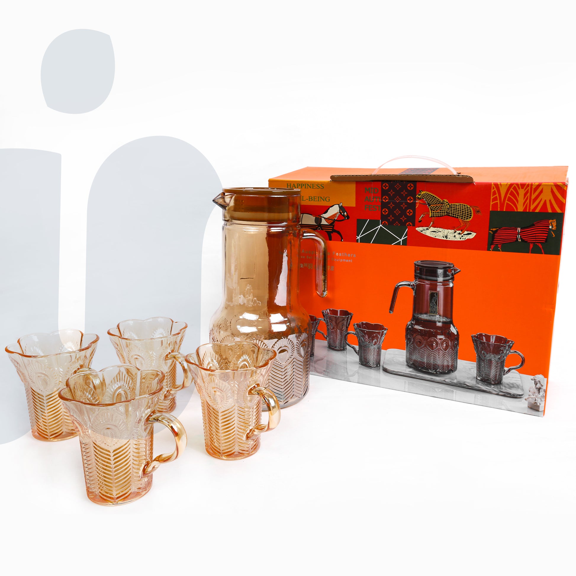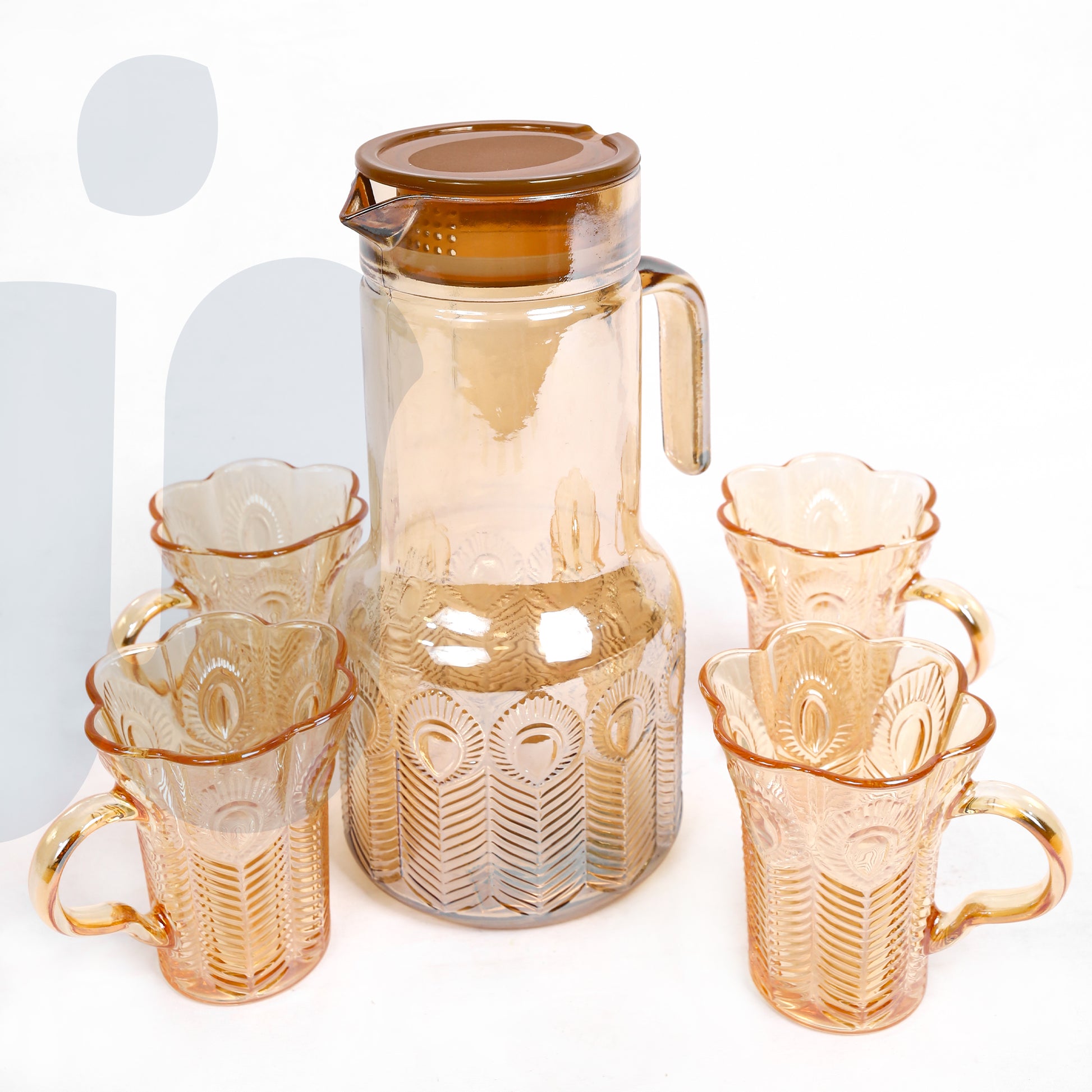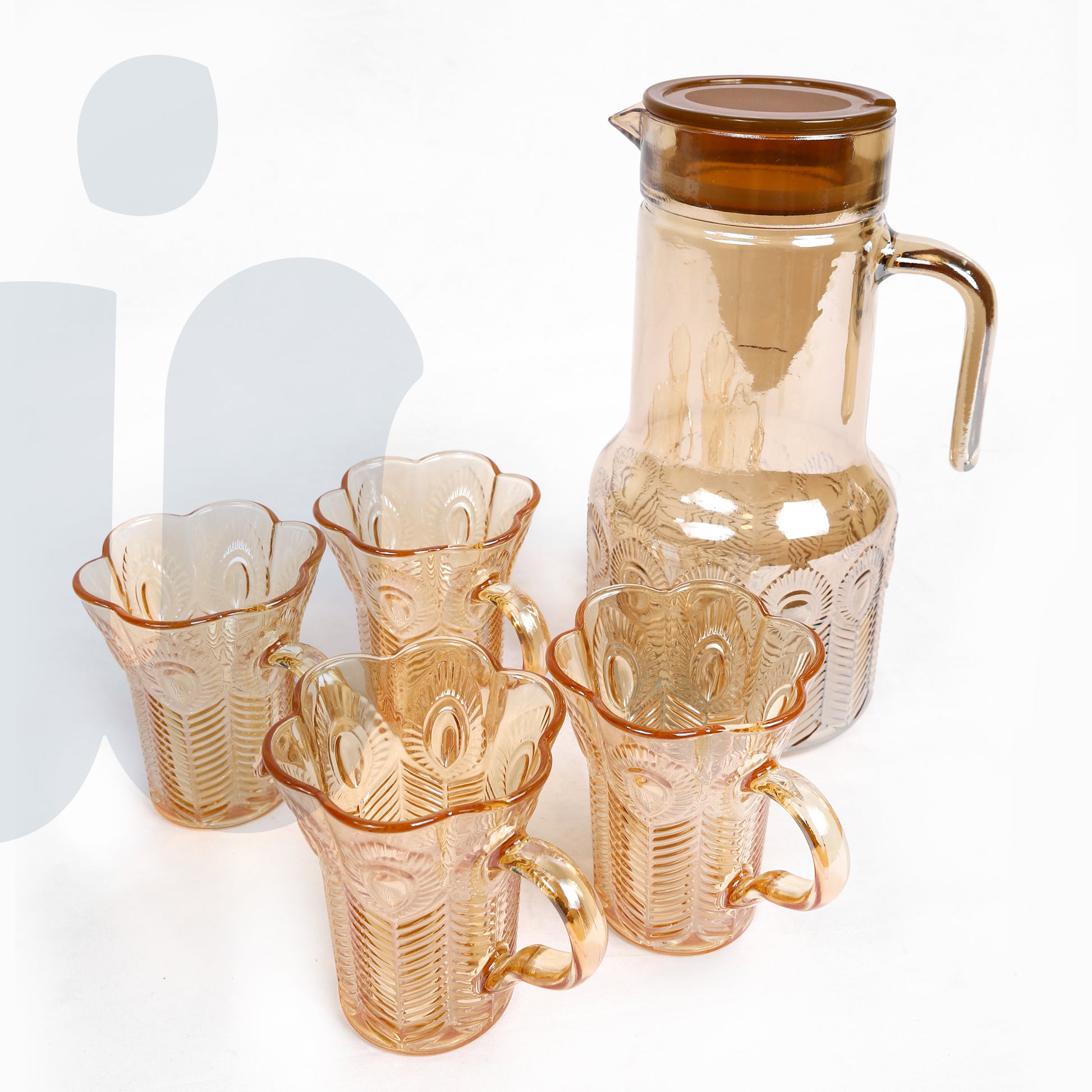 (عسلي)طقم إبريق زجاجي مع 4 أكواب