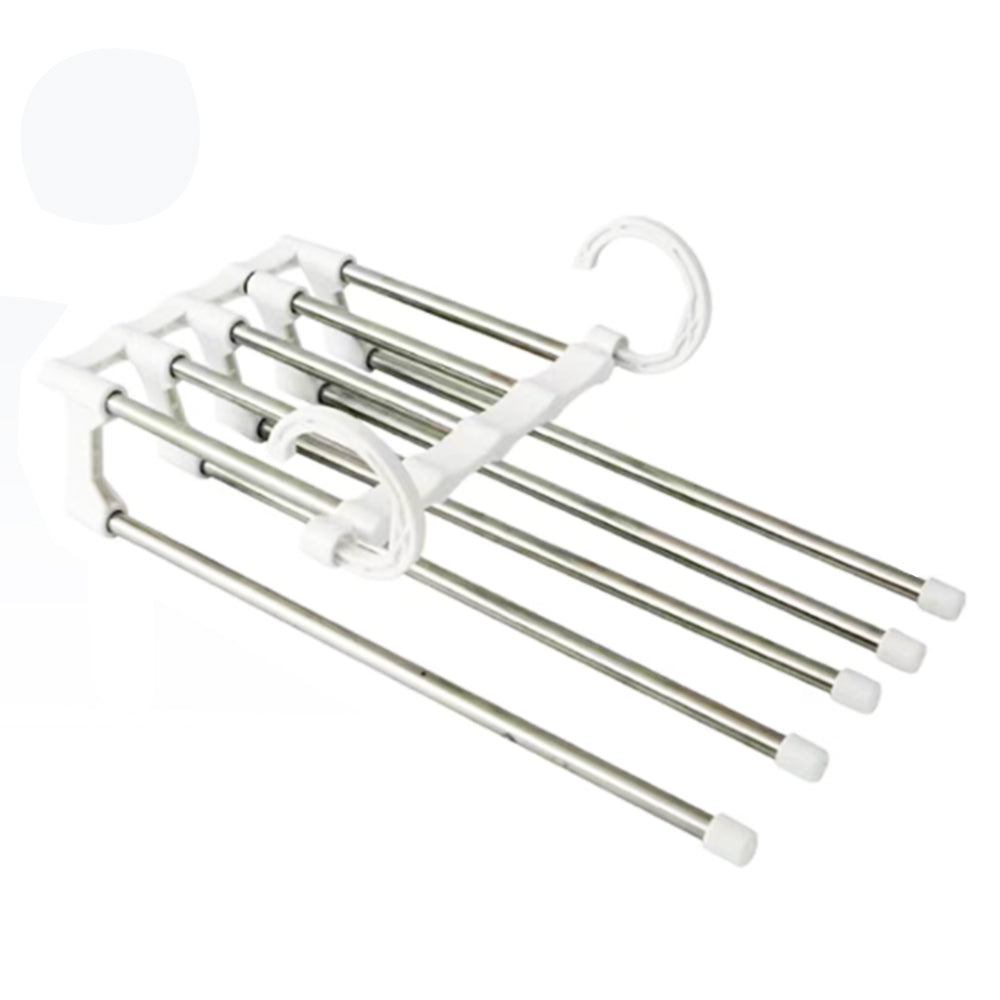 علاقتان من الفولاذ المقاوم للصدأ بتصميم أنيق ومتعدد الطبقات لتوفير المساحة وتنظيم الملابس في الخزانة بسهولة. مثالية لتعليق البنطلونات والجينز والأوشحة والمناشف، وتتميز بالقوة والمتانة ومقاومتها للصدأ لضمان استخدام طويل الأمد.