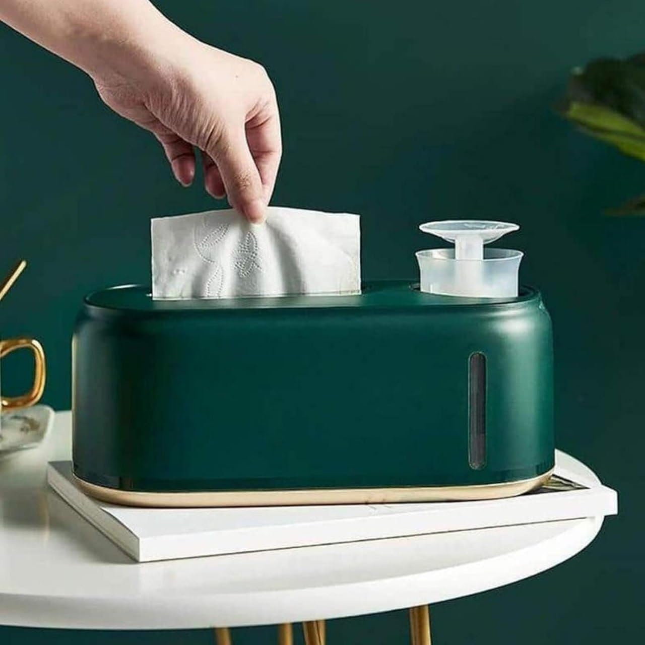 علبة مناديل حديثة مع موزع مرطب بتصميم ثنائي الوظائف
