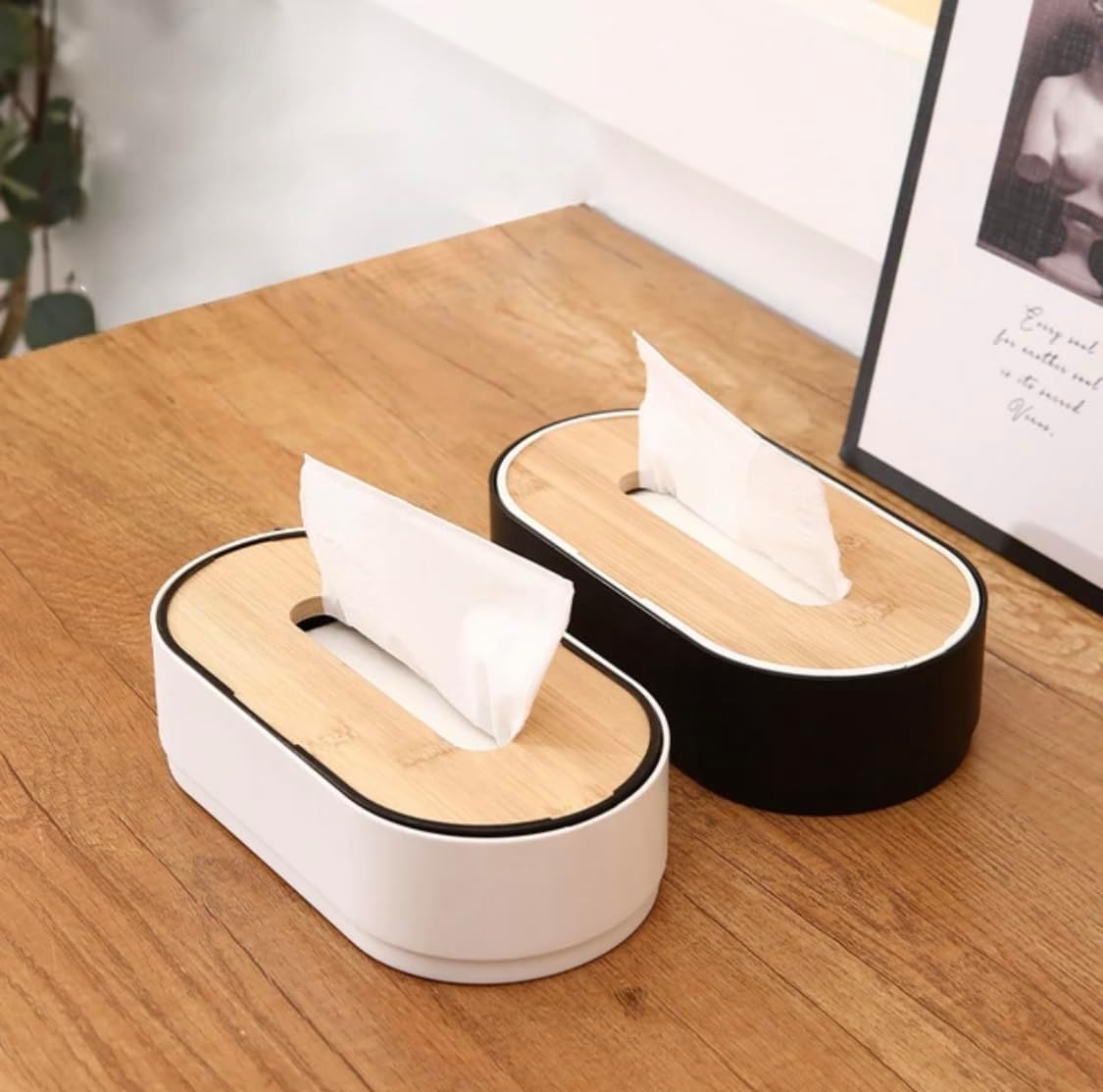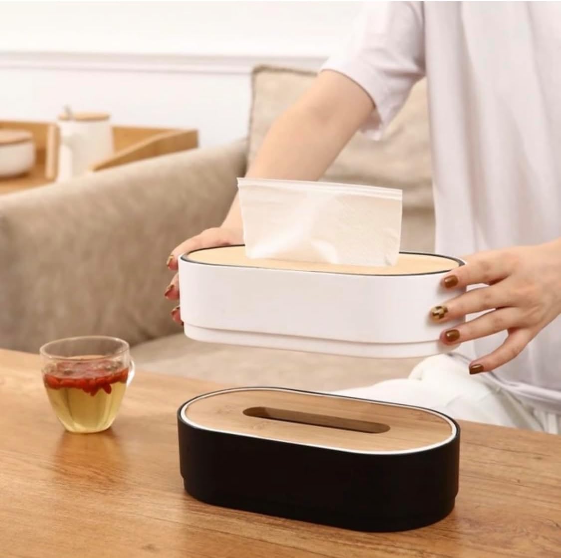 علبة مناديل بغطاء خشبي بامبو – تصميم شفاف أنيق