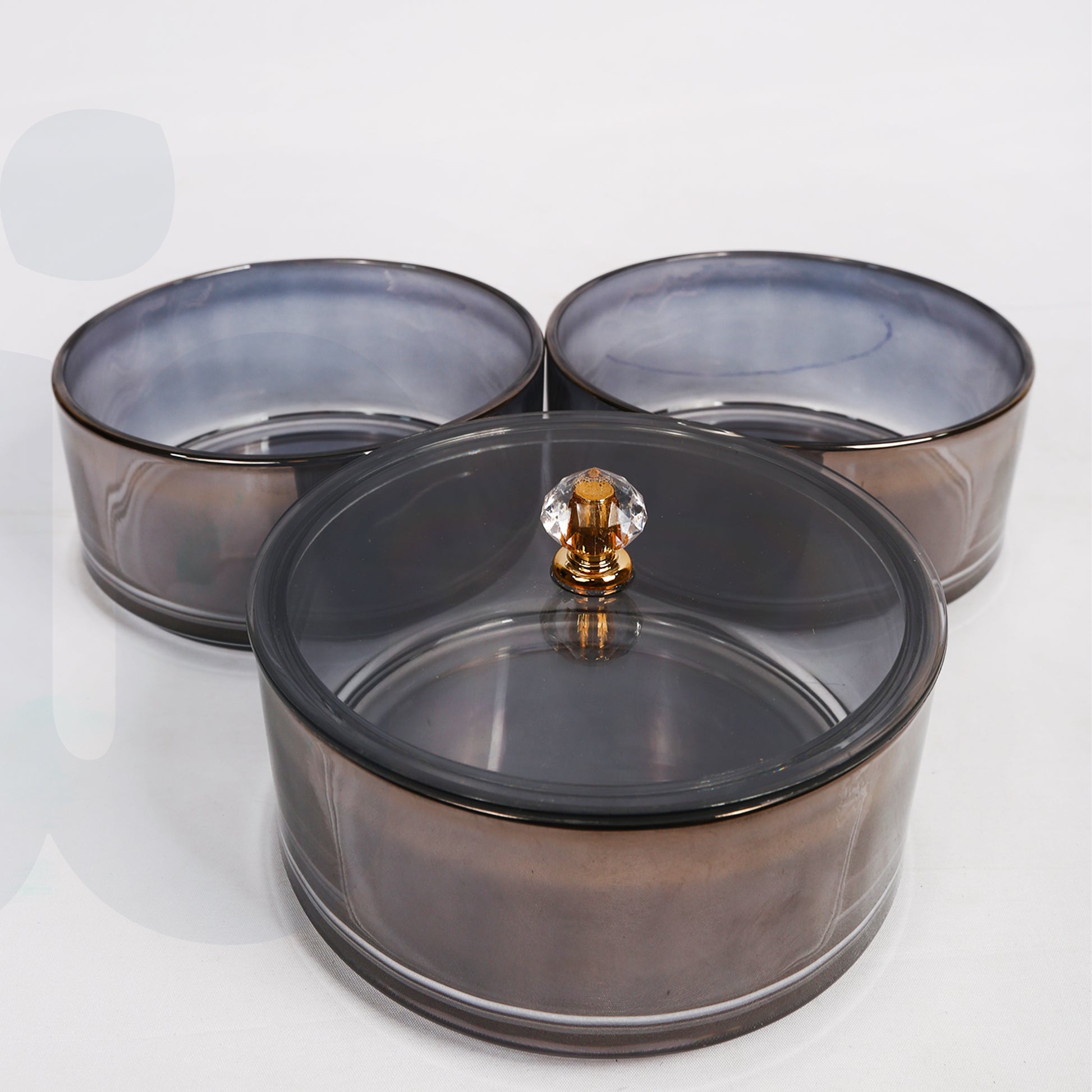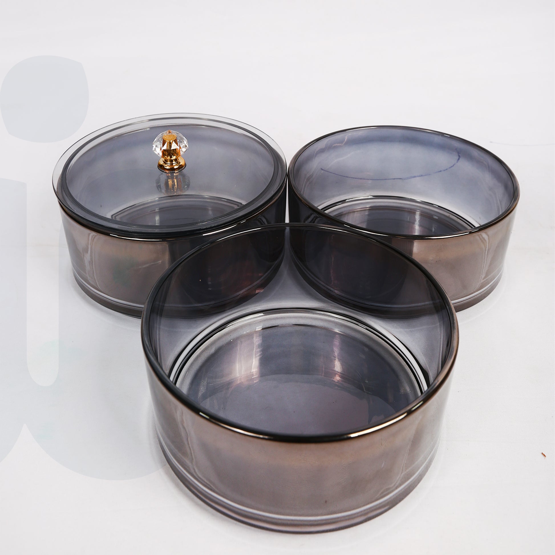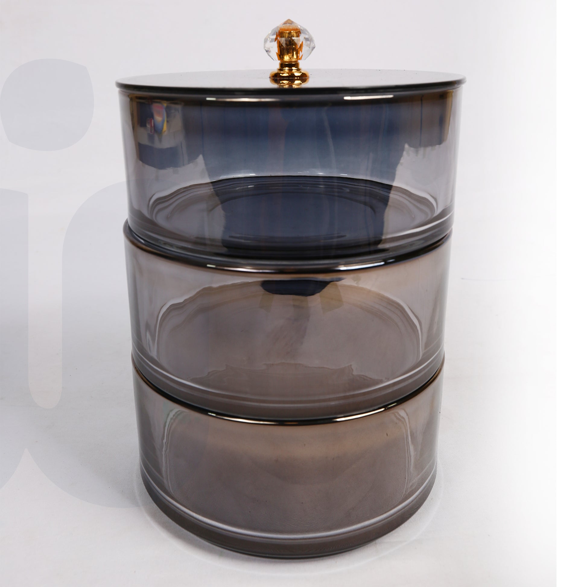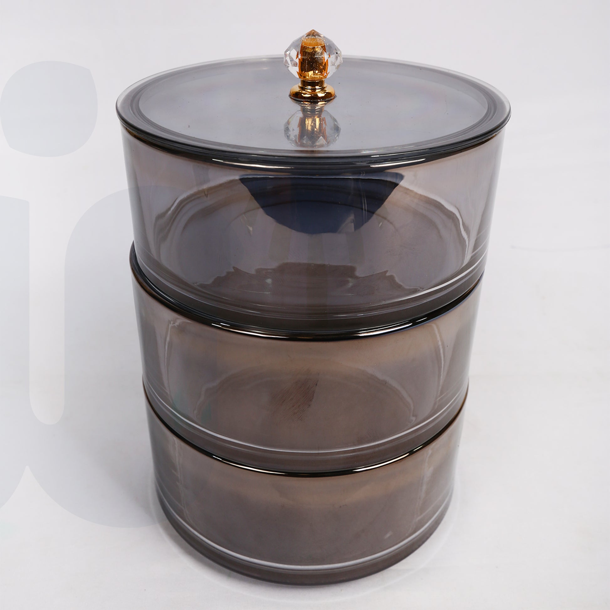 عمود كاندي أنيق مكون من 3 أدوار من الزجاج باللون الأسود الفخم، يجمع بين العملية والأناقة في آنٍ واحد. مثالي لتقديم الكاندي، المكسرات، الياميش أو الحلويات بطريقة مرتبة وجذابة، ليضفي لمسة فاخرة على طاولة التقديم في المنزل أو المناسبات.