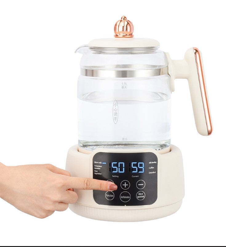 غلاية شاي كهربائية أنيقة بسعة 2 لتر، مصنوعة من الزجاج المقاوم للحرارة مع قاعدة تسخين قوية وشاشة رقمية لعرض درجة الحرارة بدقة. توفر غليانًا سريعًا للماء مع تصميم عصري يناسب جميع المطابخ، وتعتبر مثالية لتحضير الشاي، القهوة، أو أي مشروب ساخن بسهولة وأمان.