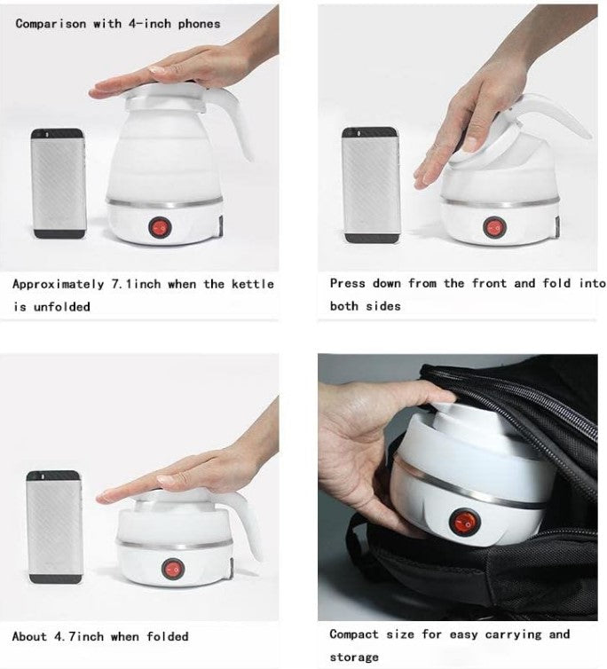 غلاية كهربائية صغيرة قابلة للطي من السيليكون – غلاية وسخان ماء محمول للسفر والتخييم مع سلك طاقة قابل للفصل
