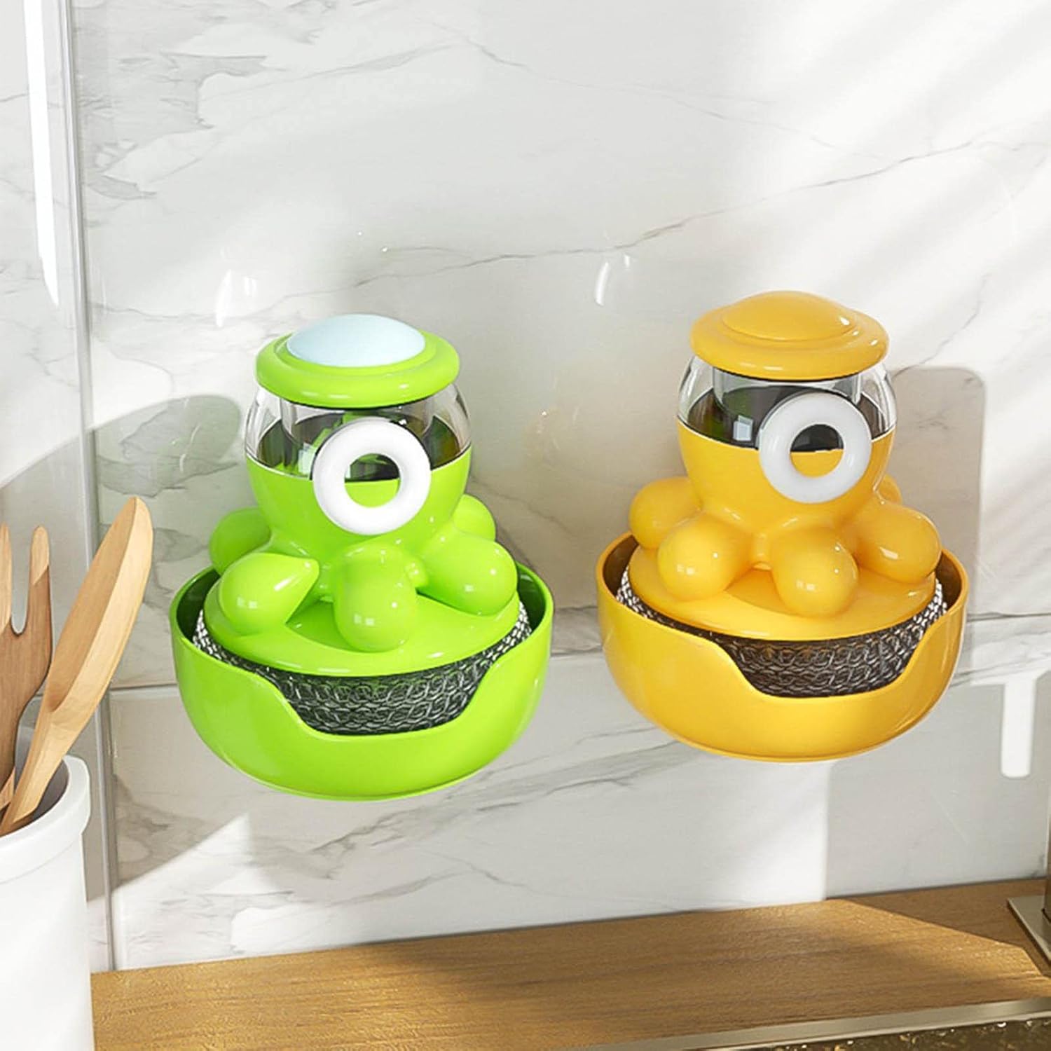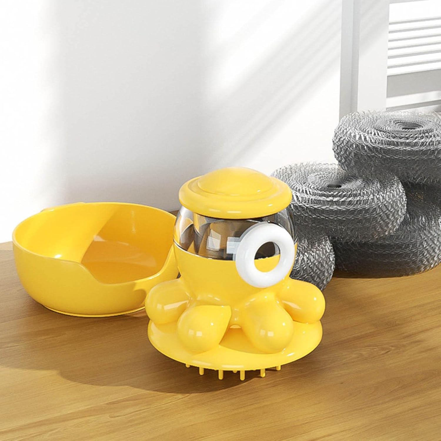 فرشاة تنظيف لتوزيع الصابون على شكل اخطبوط مع صينية تنقيط وفرشاة غسيل للاطباق والاواني والمقالي والحوض وتنظيف المطبخ