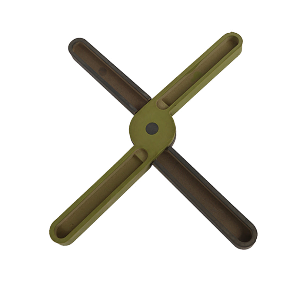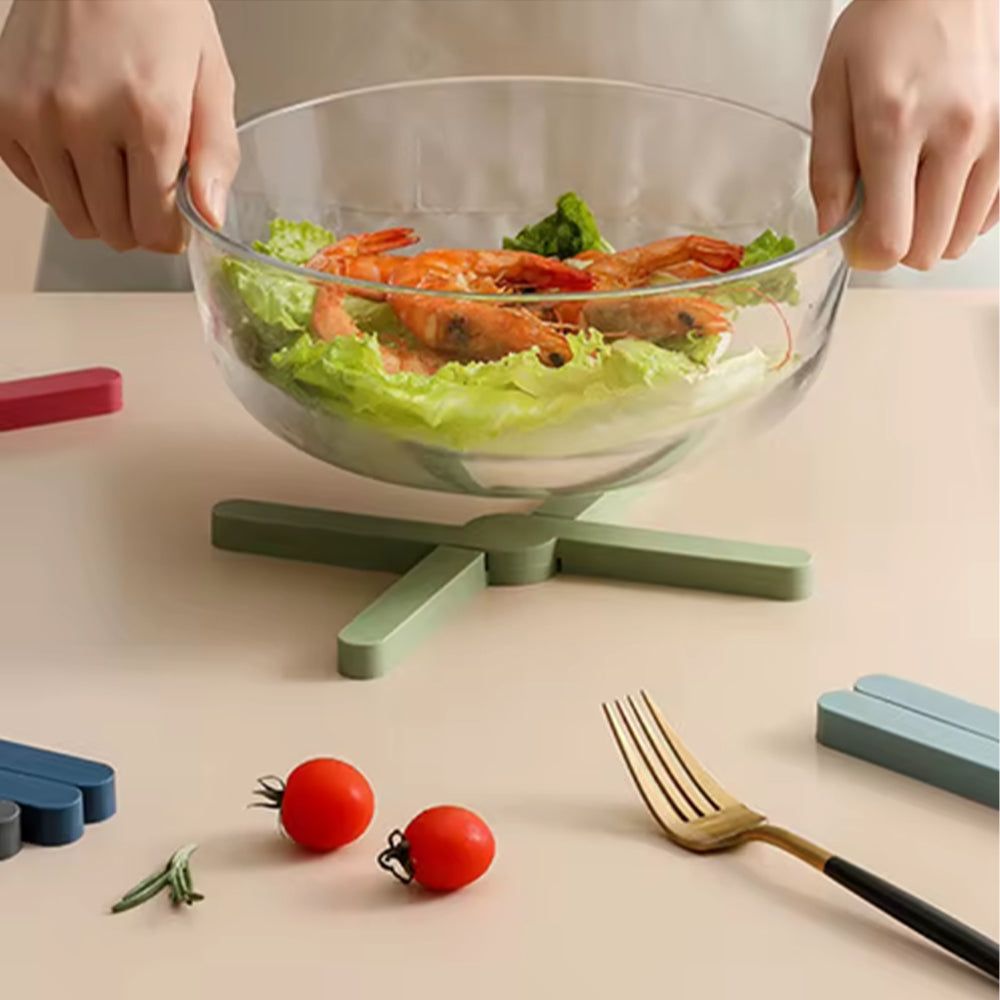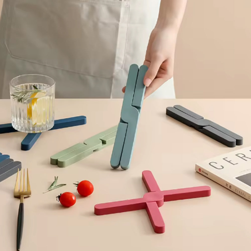 قاعدة تثبيت عملية مصممة على شكل حرف X، مقاومة للحرارة ومناسبة لوضع الأواني والمقالي الساخنة بأمان على الطاولات أو أسطح المطبخ. تتميز بتصميم عصري خفيف وسهل التخزين، مما يجعلها إضافة مثالية لأي مطبخ عصري.
