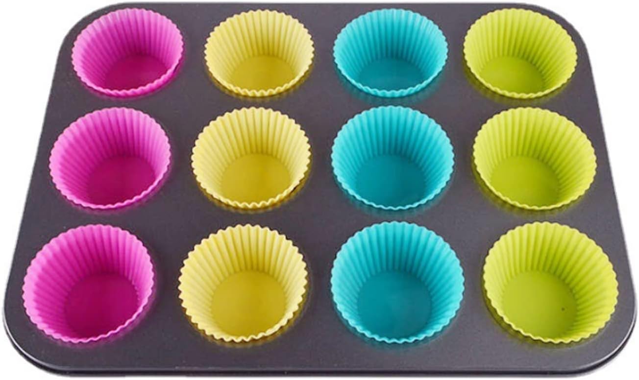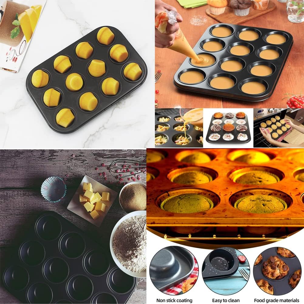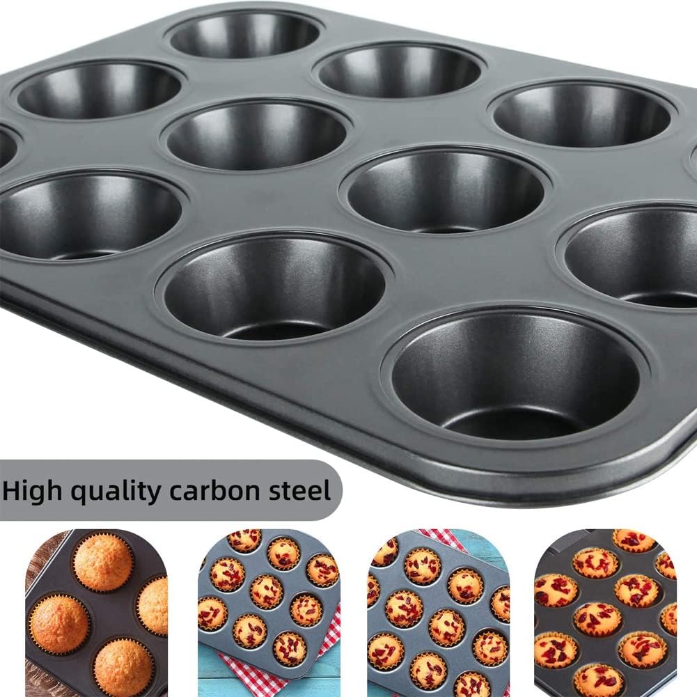 قالب عملي للخبز والطبخ يحتوي على 12 كوب مصنوع من الصلب الكربوني السميك بطبقة غير لاصقة يساعد على توزيع الحرارة بالتساوي لتحضير الكيك والبسكويت والمخبوزات بسهولة مثالي للاستخدام المنزلي والمناسبات