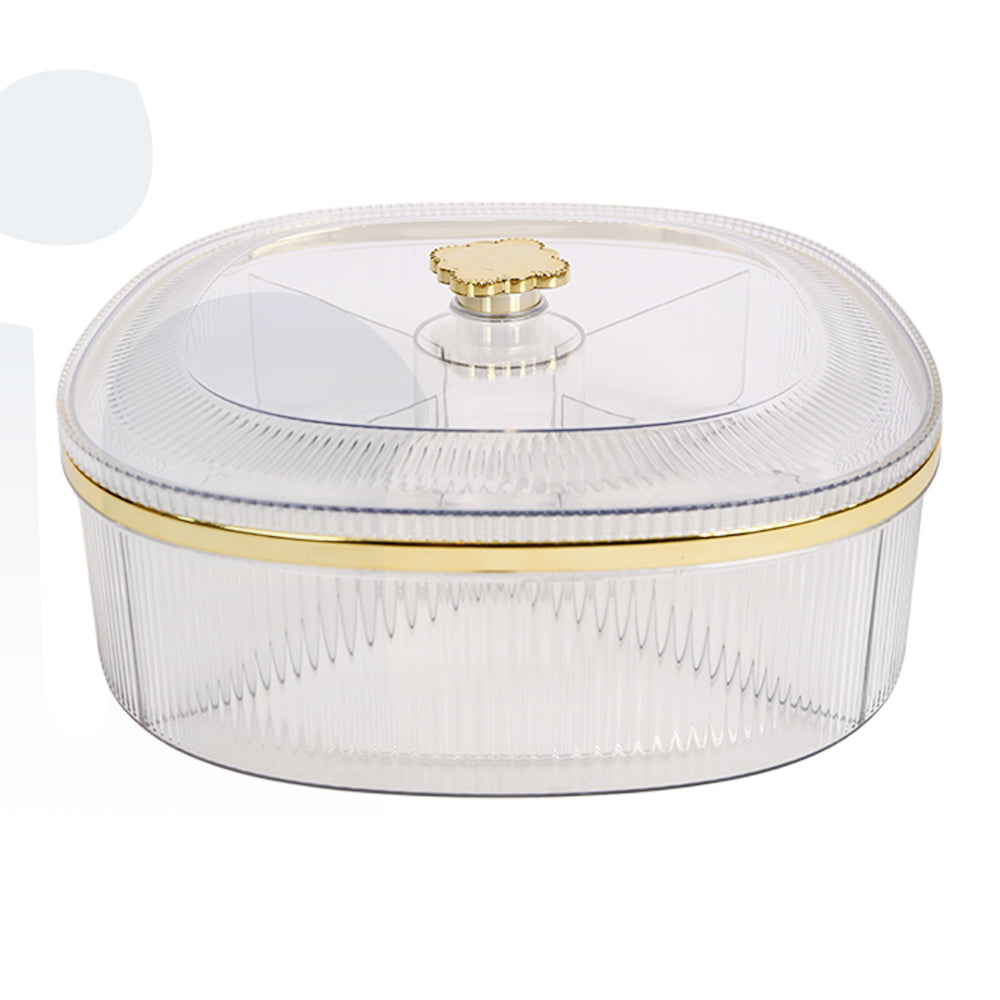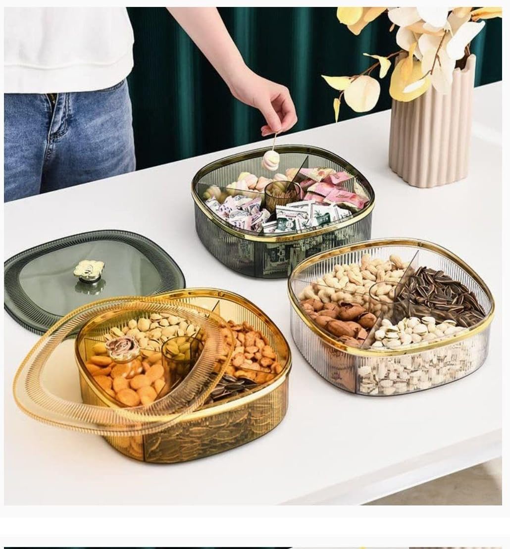 طبق تسالي مربع مصنوع من الأكريليك عالي الجودة بتصميم أنيق ومقبض عملي لسهولة الحمل. يحتوي على 5 خانات مثالية لتقديم المكسرات والحلويات والوجبات الخفيفة، دافئ يضفي لمسة فخمة على ديكور المائدة خاصة في رمضان والمناسبات.
