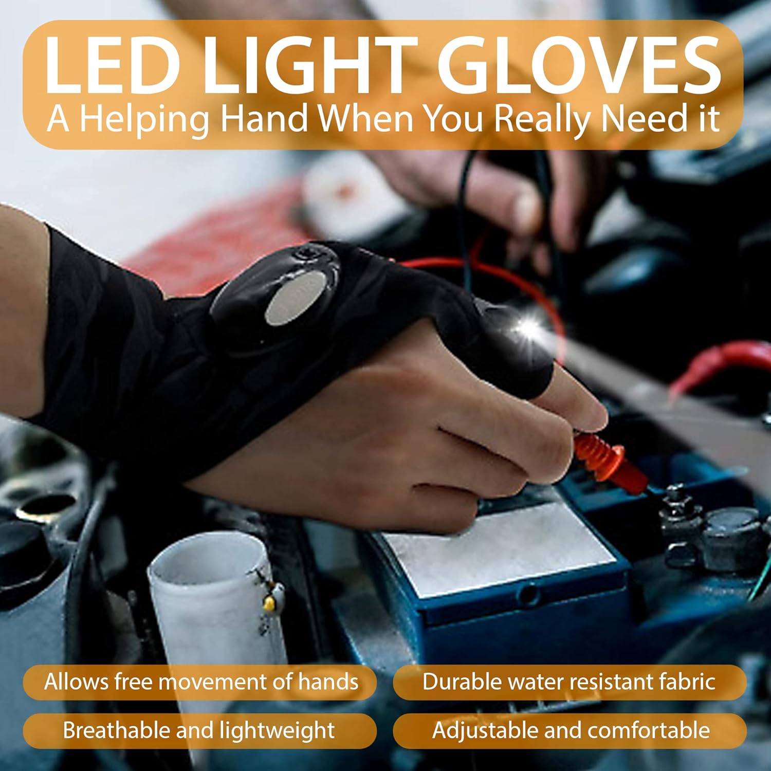 قفازات بمصباح يدوي ليد – قفازات مضيئة بدون أصابع مقاومة للماء وتعمل بالبطارية