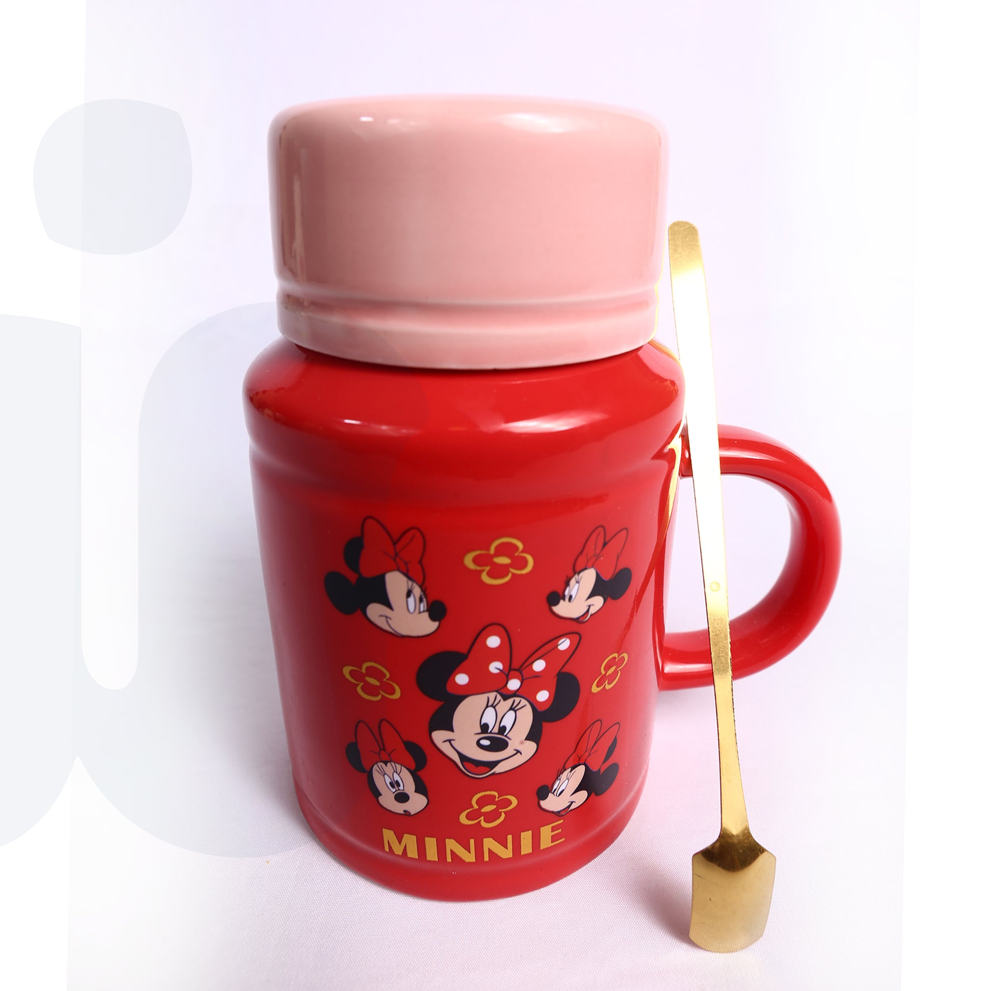 كوب بورسلين ميكي ماوس أحمر بسعة 470 مل – مزود بغطاء ومعلقة جولد