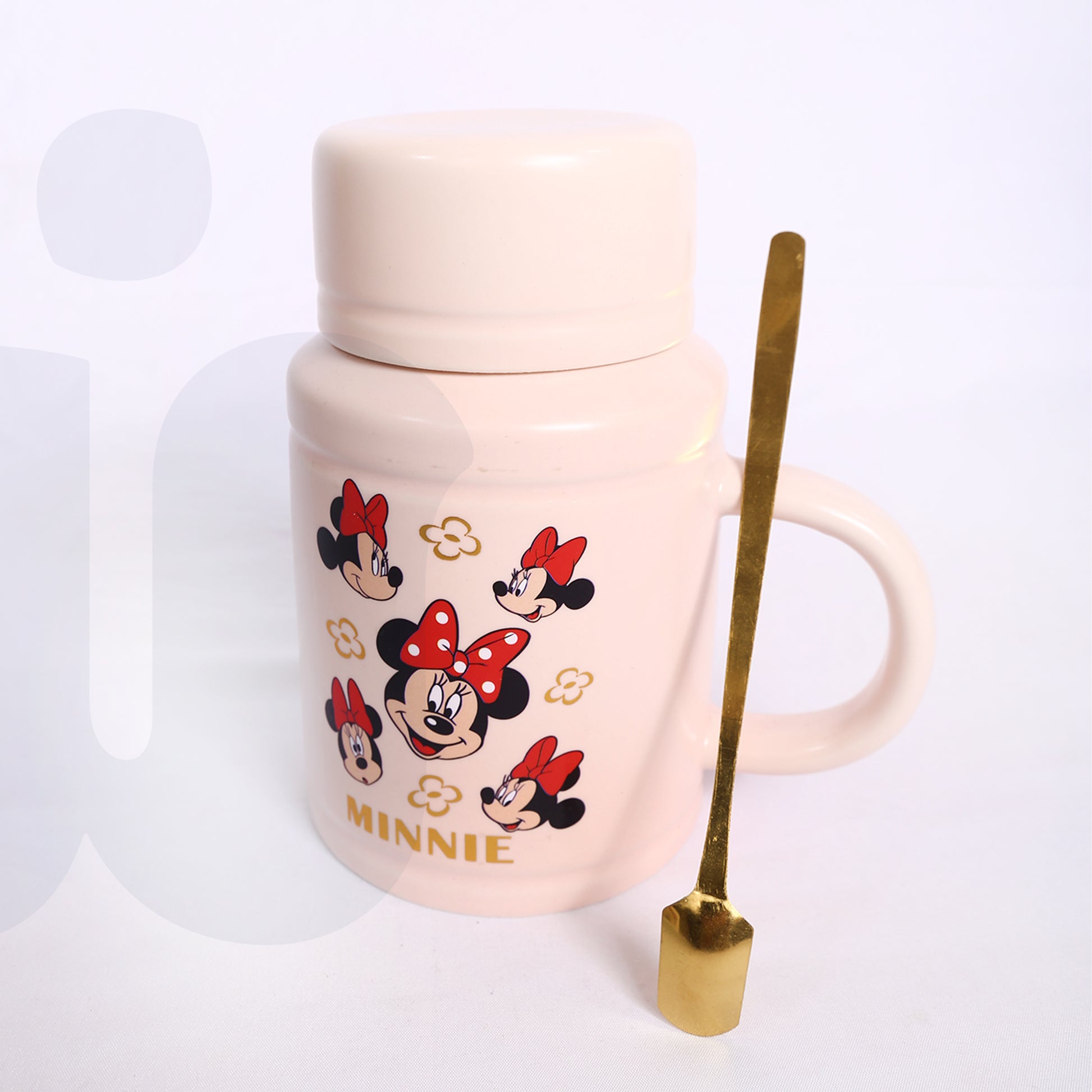 كوب بورسلين ميكي ماوس بينك بسعة 470 مل – مزود بغطاء ومعلقة جولد