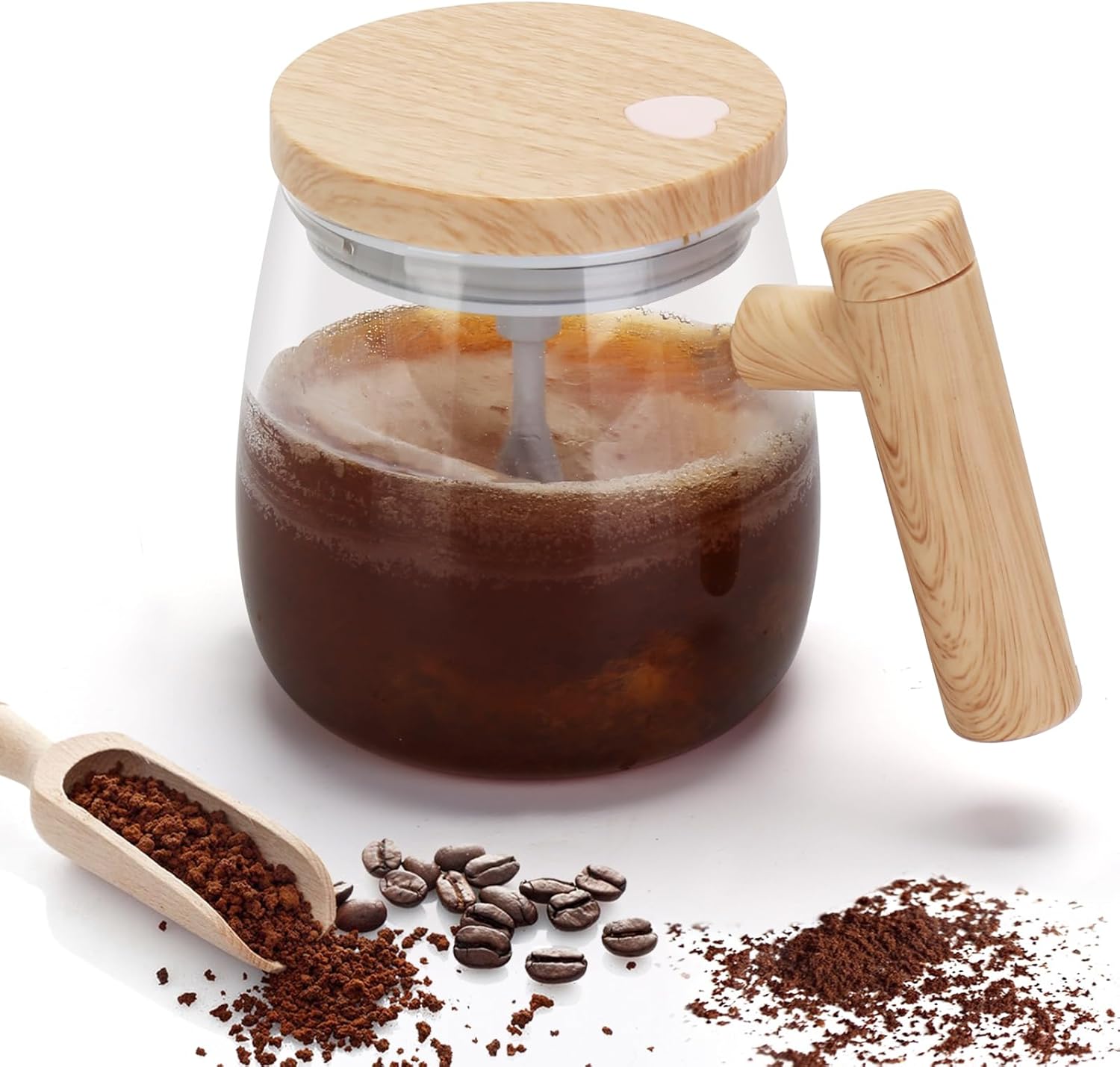 كوب قهوة زجاجي ذاتي التقليب كهربائي – سعة 400 مل مع غطاء ومقبض لتحضير المشروبات بسهولة في المنزل أو المكتب
