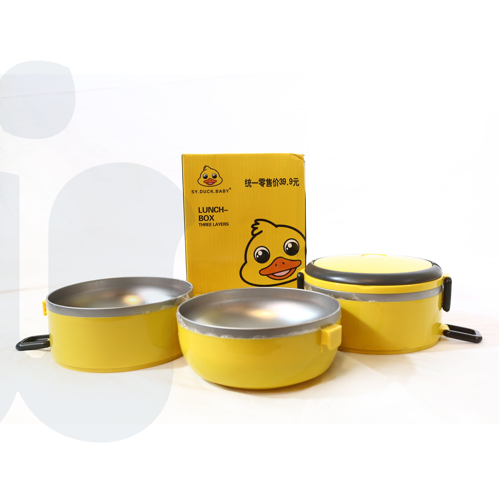 لانش بوكس حراري من الفولاذ المقاوم للصدأ – 3 طبقات بتصميم بطة صفراء لطيف لحفظ الطعام الساخن والبارد