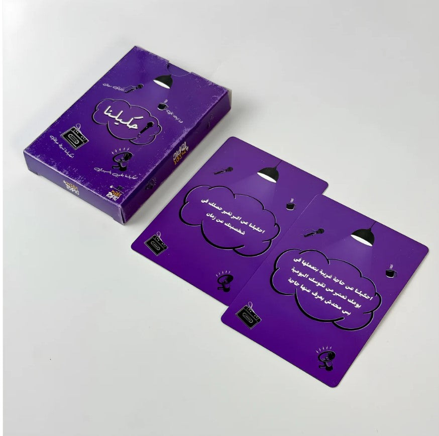 لعبة بطاقات حوارية ممتعة تهدف إلى فتح مواضيع شيقة ومواقف طريفة بين الأصدقاء أو العائلة، حيث يجيب اللاعبون عن أسئلة تحفّز على التفاعل وسرد القصص بطريقة مسلية. مصنوعة من ورق مقوّى عالي الجودة بتصميم بسيط وألوان جذابة.