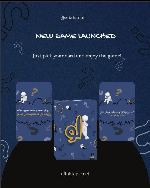 لعبة أسئلة وتحديات خيالية تدفع اللاعبين للتفكير والإجابة على مواقف “لو حدث كذا…” بطريقة ممتعة ومليئة بالمفاجآت. مثالية لفتح النقاشات والضحك بين الأصدقاء والعائلة. مصنوعة من ورق مقوّى عالي الجودة بتصميم أنيق ومرح.