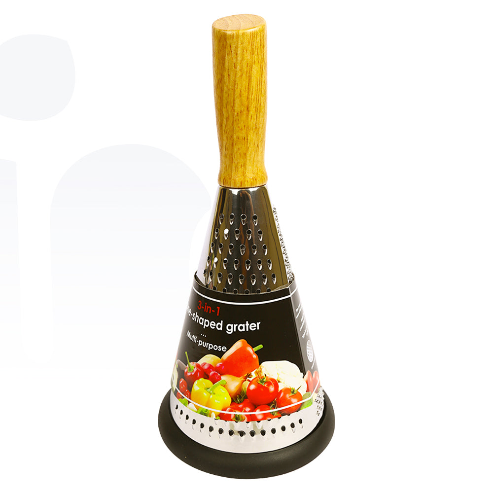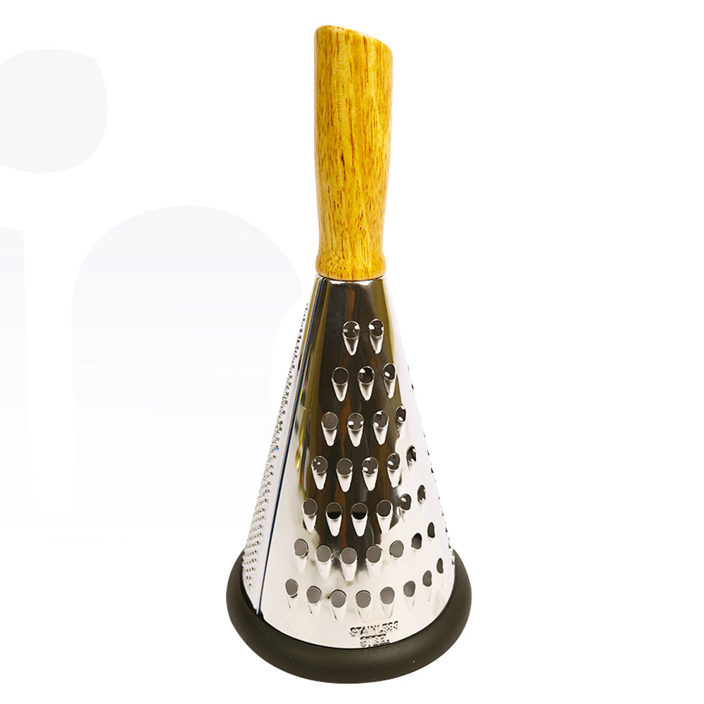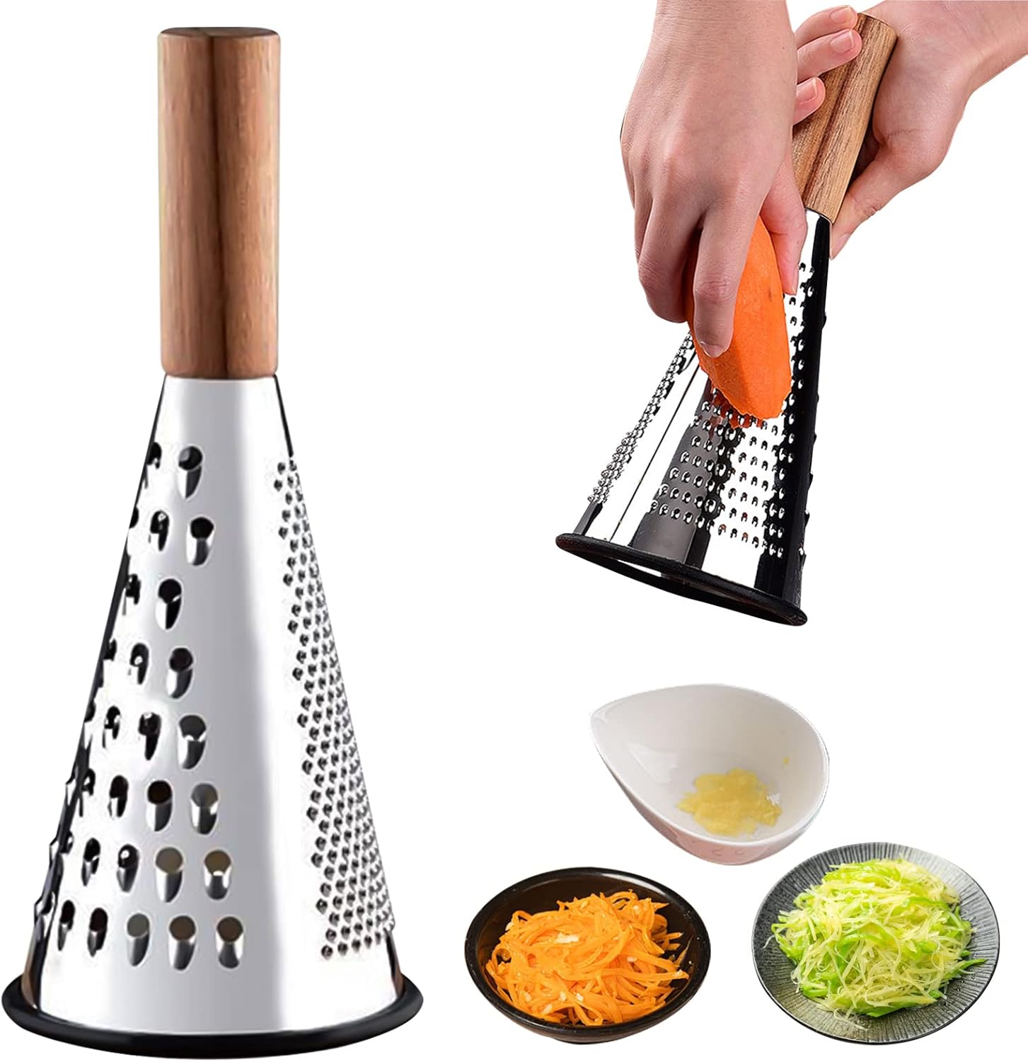 مبشرة مطبخ من الستانلس ستيل بتصميم مخروطي مميز، تساعدك على بشر الخضروات والجبن والفواكه بسهولة وكفاءة، أداة مثالية لتحضير الطعام بسرعة وتعزيز لمساتك الإبداعية في الطهي.