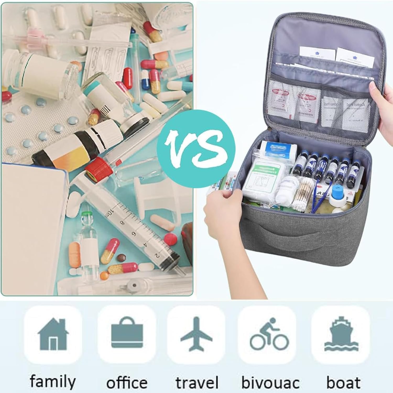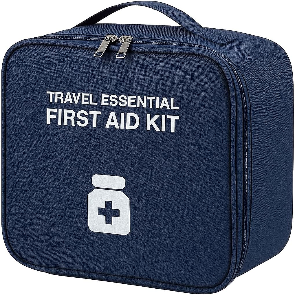 حقيبة طبية صغيرة باللون الكحلي مع مساحات تخزين مريحة بسحاب للتخزين المنظم وسهولة الوصول إلى مستلزمات الإسعافات الأولية أثناء السفر