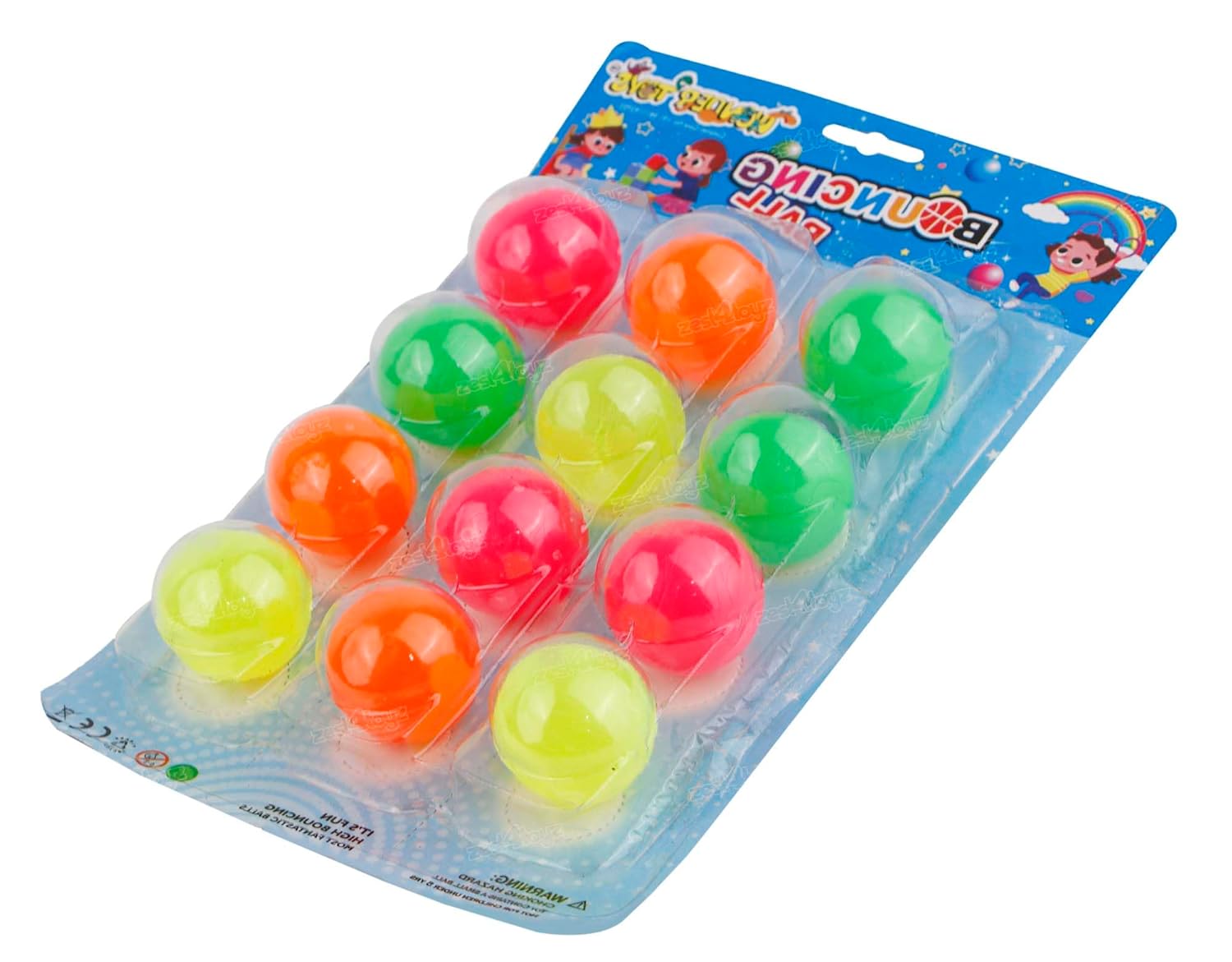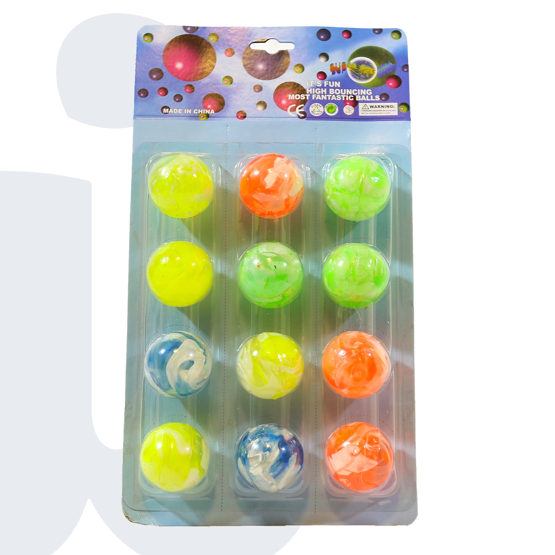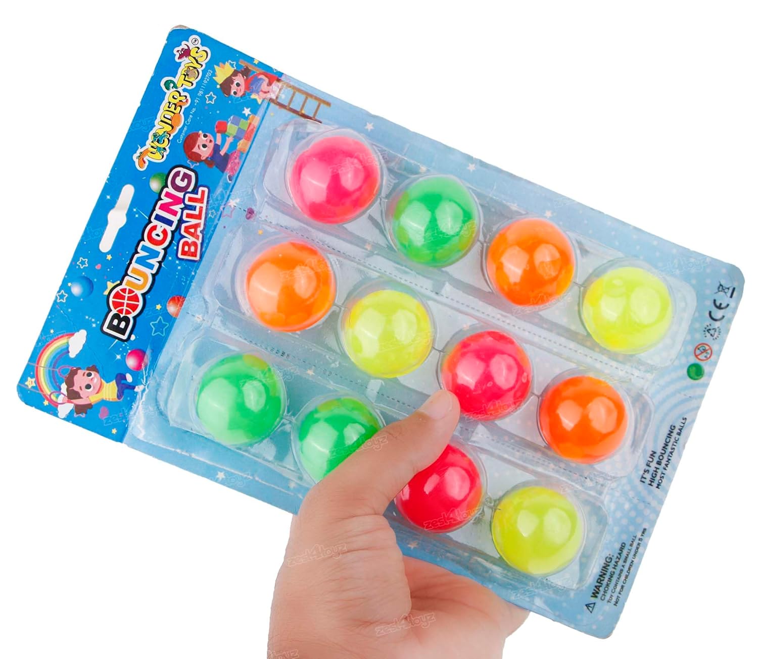 12 كرة مطاطية نطاطة بألوان زاهية ومتنوعة.