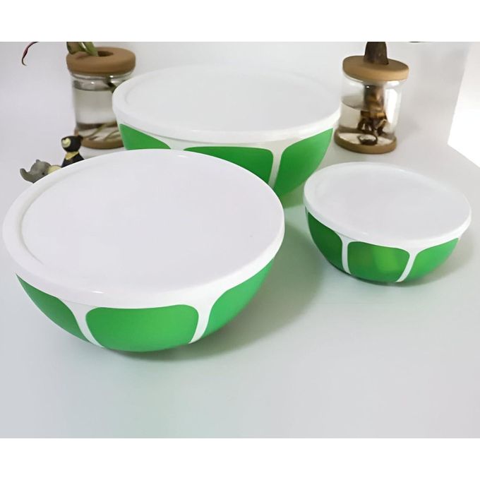 مجموعة عملية مكونة من 3 حاويات دائرية بأحجام مختلفة (600 مل، 1.5 لتر، و3 لتر) وألوان جذابة تناسب مختلف الاستخدامات في المطبخ. مثالية لتخزين بقايا الطعام، وتحضير الوجبات، والوجبات الخفيفة، كما تتميز بأغطية محكمة الإغلاق للحفاظ على نضارة الأطعمة لفترة أطول.